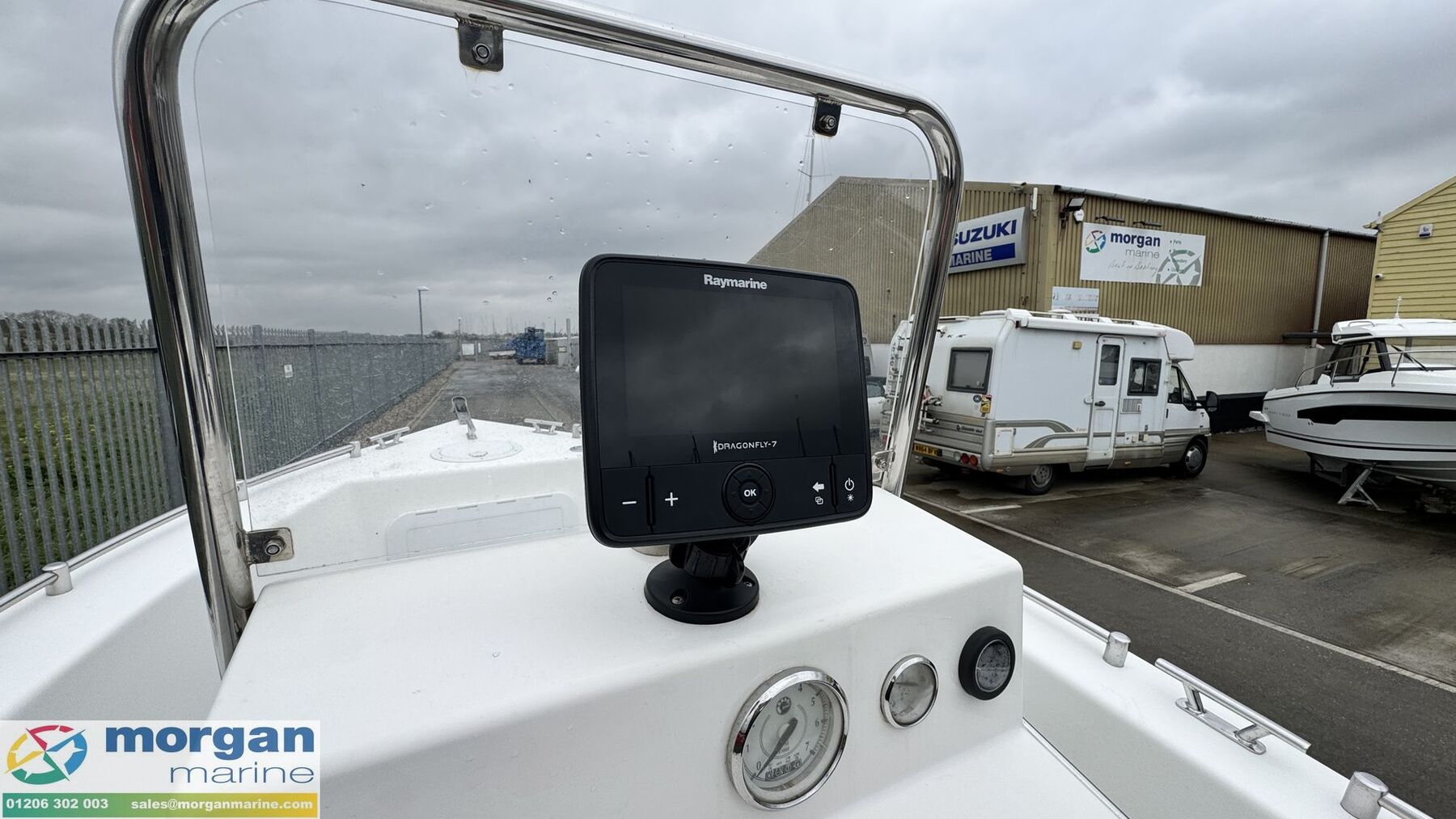 Electronics: Raymarine Dragonfly 7 chart plotter and fish finder. USB sockets. RPM, trim and fuel gauge. Battery isolator switch. Manual and electric bilge pump.