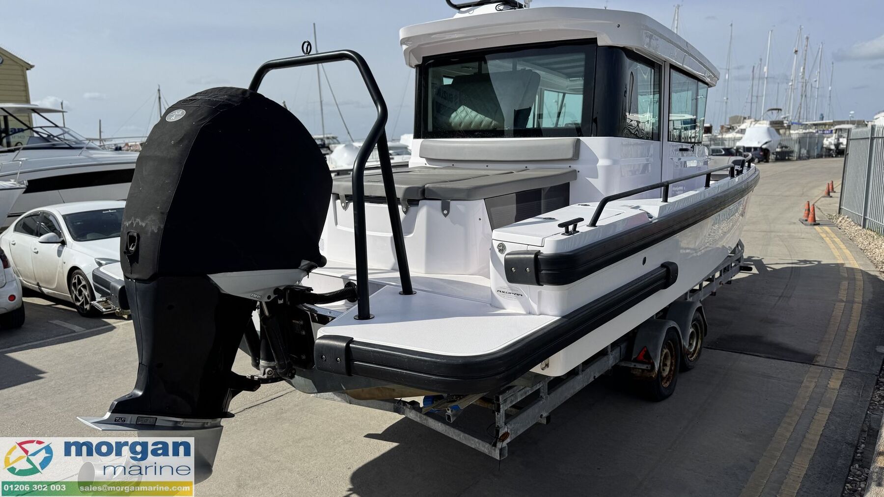 2021 Axopar 28 Cabin Brabus line is an excellent example of this highly sought after all weather boat, powered by a Mercury 350 XL Verado outboard delivering strong, reliable performance with impressive handling. This boat has been well maintained and remains in good condition, ready for its next owner. The boat is well specified for both comfort and practicality, featuring a Simrad 12-inch chart plotter with built-in AIS, Simrad VHF DSC radio, and a Fusion audio system with speakers for onboard entertainment. Manoeuvring is made easy with the addition of a bow thruster, while electric trim tabs ensure a smooth and controlled ride. A Webasto diesel air forced heating system keeps the cabin comfortable in all seasons. Access on board is excellent thanks to both port and starboard side doors, and the layout is designed for versatility and relaxation. The aft sunbed area comes with removable cushions, complemented by additional port and starboard side lockers for flexible seating and storage. Below, the cuddy offers a 2-berth setup, with the saloon also converting into an additional double berth, making overnight stays easy and comfortable. Further features include a forward console toilet compartment with manual toilet and sink, electric windlass for easy anchoring, a deck pop-up shower, and an A-frame with tow eye, adding to the boat’s functionality for leisure or light commercial use. This is a well rounded, practical, and stylish boat that is turnkey ready and ideal for UK boating conditions. Contact us today to arrange a viewing or for more information.