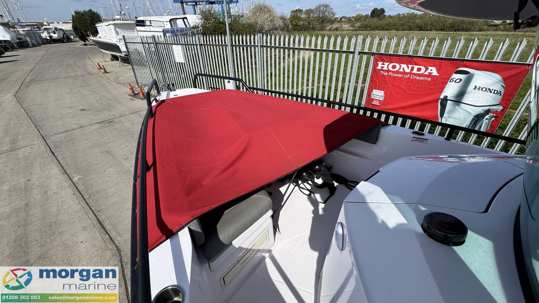 Cabin: Lift up bench seat which allows access to aft cabin with 2 berth cuddy with mattress, port windows with blind, mirror, storage and hatch to deck. Saloon conversion for another double berth. Forward console toilet compartment with manual toilet, sink, mirror and storage. Under pilot and co pilot bolster seat - lifts up to revel fridge and sink with tap. Upgraded Walnut teak decking in cabin.