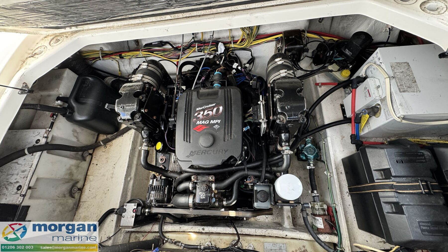 Machinery: Mercruiser 350 MAG MPI V8 petrol inboard engine with duo prop with twin bladed stainless steel propellers. Electric trim tabs. Bow thruster with remote control. Reverse cycle air conditioning. Fuel capacity - 386 litres. Water capacity - 125 Litres. Holding tank - 75 litres.