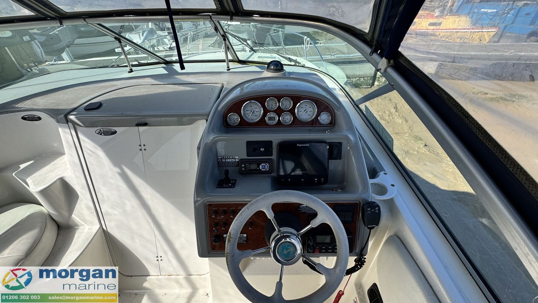 Just arrived at Morgan Marine, this well presented 2007 Bayliner 285 Ciera offers comfortable cruising, practical accommodation and strong performance, making it an ideal choice for weekends away or extended time on the water. Powered by a MerCruiser 350 MAG MPI V8 petrol inboard engine paired with twin bladed stainless steel propellers, this popular sports cruiser delivers smooth, reliable power and responsive handling. Manoeuvring and anchoring are made easy thanks to the Lewmar electric windlass, while electric trim tabs help optimise performance and ride comfort in varying sea conditions. The cockpit is designed for relaxation and entertaining, featuring large amounts of cockpit seating beneath a dark blue enclosed canopy, providing excellent protection from the elements and extending usability throughout the season. At the helm you’ll find a Raymarine Dragonfly 7 Pro chart plotter for navigation and a NorthStar Explorer 710 VHF radio for communication and safety on the water. Below deck, the Bayliner 285 Ciera offers impressive accommodation for a boat of this size, with six berths arranged around a comfortable saloon seating area with table. The spacious galley is well equipped with a sink, electric hob, fridge and ample storage, making it ideal for preparing meals while onboard. The separate toilet compartment includes a marine toilet, sink and shower, providing convenient facilities for longer stays aboard. To enhance onboard comfort in all seasons, the boat is also fitted with reverse cycle air conditioning, allowing both cooling and heating when required. Combining practical family accommodation, capable performance and a well equipped specification, this 2007 Bayliner 285 Ciera represents a fantastic opportunity for anyone looking to step into comfortable coastal cruising. Contact Morgan Marine today for early viewings!