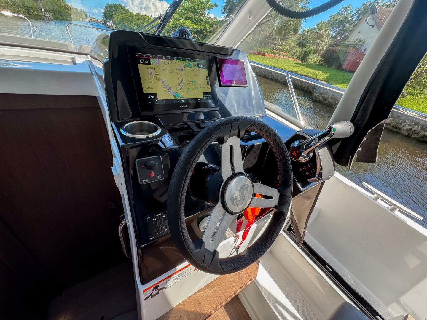 The exterior is equally well-equipped with an anchoring/mooring kit, cockpit sun awning, and Simrad upgrades.