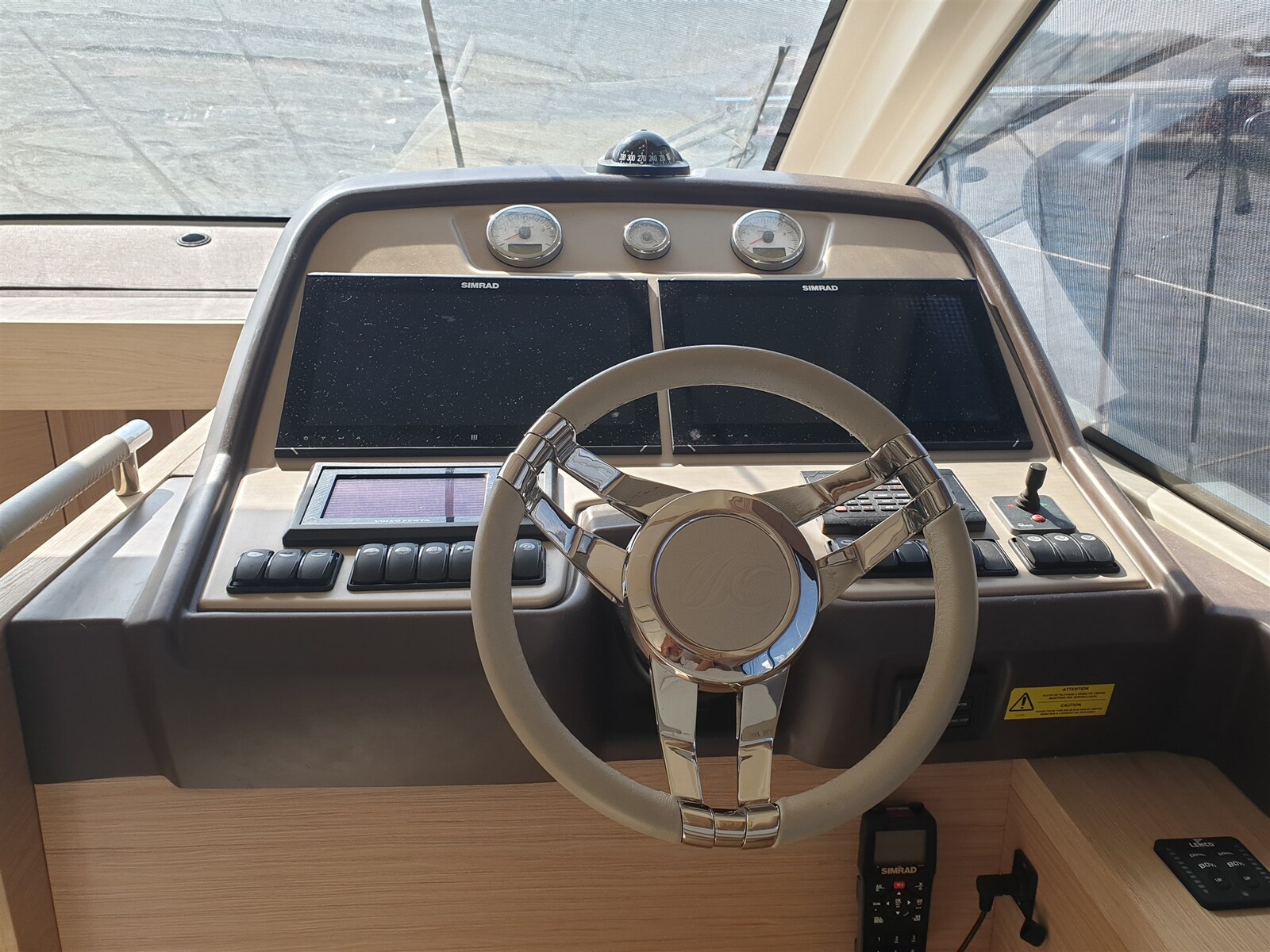 Rudder angle indicator, Radar Antenna, 2 Electronic engine control (Volvo Penta), 2 On-Board Computer (Volvo Penta), Chain counter, Odometer (Simrad), GPS (Simrad), 2 VHF Radio, Co-pilot seat.