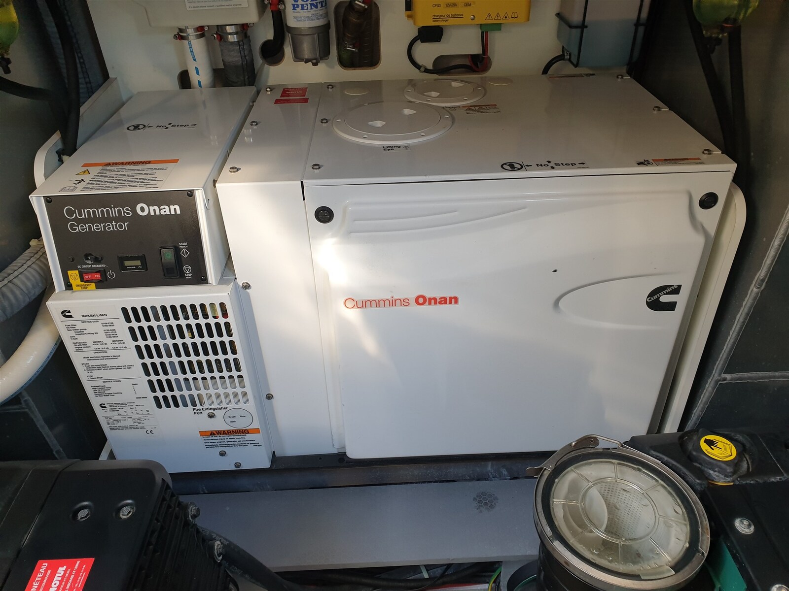 Gas Alarm, 2 Motoralarm, Bilgealarm, Druckwasserpumpe, Cockpitdusche, Doppelsteueranlage, Scheinwerfer am Heck, elektrische Trimmklappen, 2 Trimmklappen Anzeigen, Ketten-Waschanlage, Waschbecken im Cockpit, Nachtbeleuchtung, Gangway, Plattform, automatische Bilgepumpe, 2 elektrische Bilgepumpe, manuelle Bilgepumpe, Eingangstür, Teak im Cockpit, 2 Landanschluß (230 V - 50 Hz 63A con cavo di 15m), Wasseranschluss, elektrische Ankerwinde, Badeleiter, Cockpittisch, Klappbarer Wohnzimmertisch, Beiboot, Signalhorn, Verholwinde auf dem Achterdeck, Verholwinde auf dem Vordeck.
