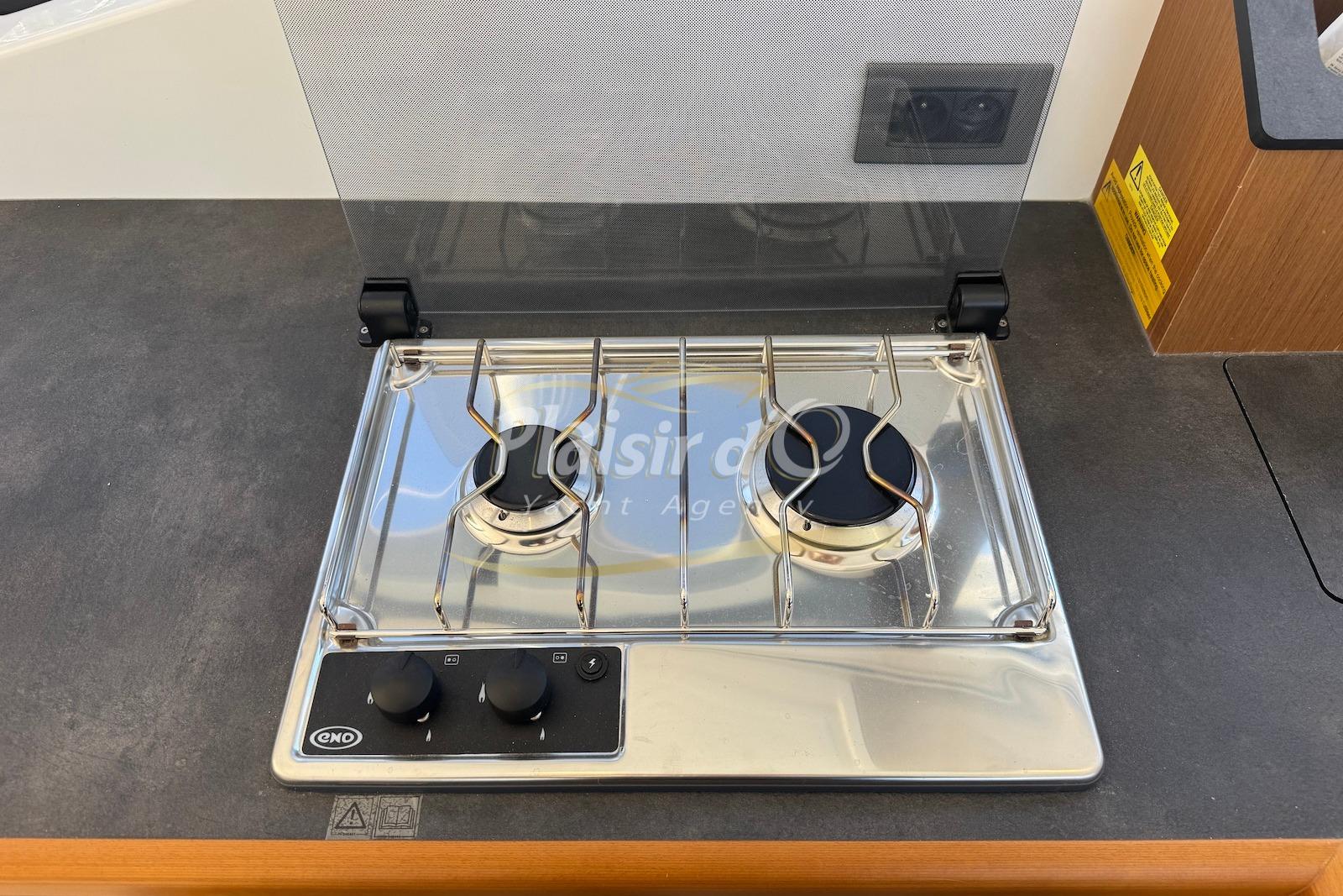 Numerous options : Raymarine electronics (GPS, autopilot, VHF, AIS), audio system, bow and stern thrusters, Opacmar hydraulic gangway, forward and flybridge sunbeds, stainless steel bimini, electric windlass, inverter, battery charger, LED lighting, TV, convertible sofa, cockpit table…