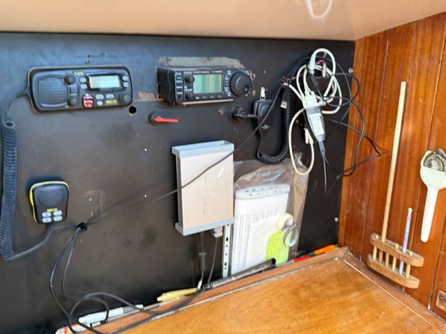 L’électronique de navigation comprend une BLU Icom équipée d’un Pactor pour l’envoi de mails et la réception de fichiers GRIB en mer, une VHF Navicom DSC, un AIS SR161, un GPS Garmin 128 complété par un GPSMAP 276C, un pilote automatique Raytheon ST6000, un radar Raytheon Pathfinder ainsi qu’un sondeur et un anémomètre Raymarine.