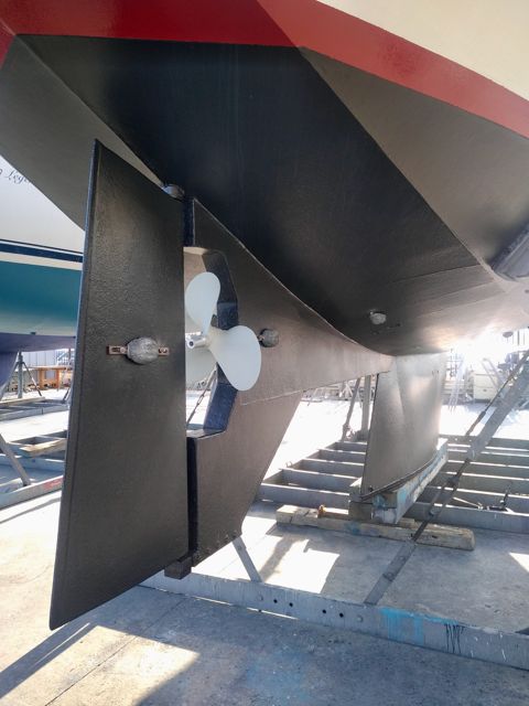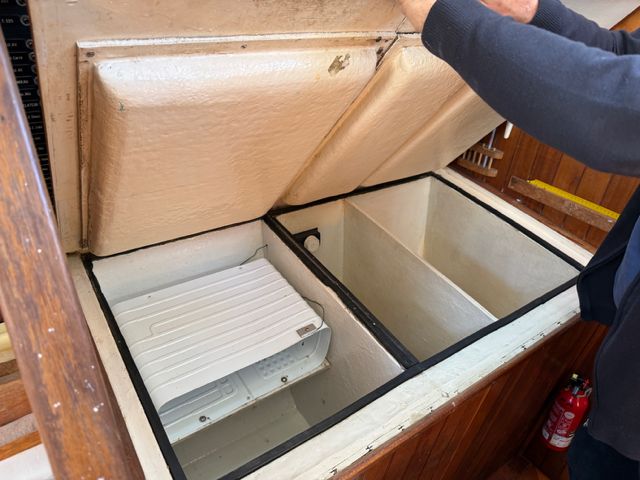 The yacht is powered by a 83 HP Fornaut diesel engine with approximately 3,200 hours. It is supplied by a main 600-litre fuel tank integrated into the keel and a 70-litre day tank. Engine access is excellent from the side cabins. The fuel circuit benefits from a pre-filter and twin cartridge filters, the freshwater pump was replaced in 2023, and the three-blade Vetus propeller is fully protected by the skeg-supported rudder.