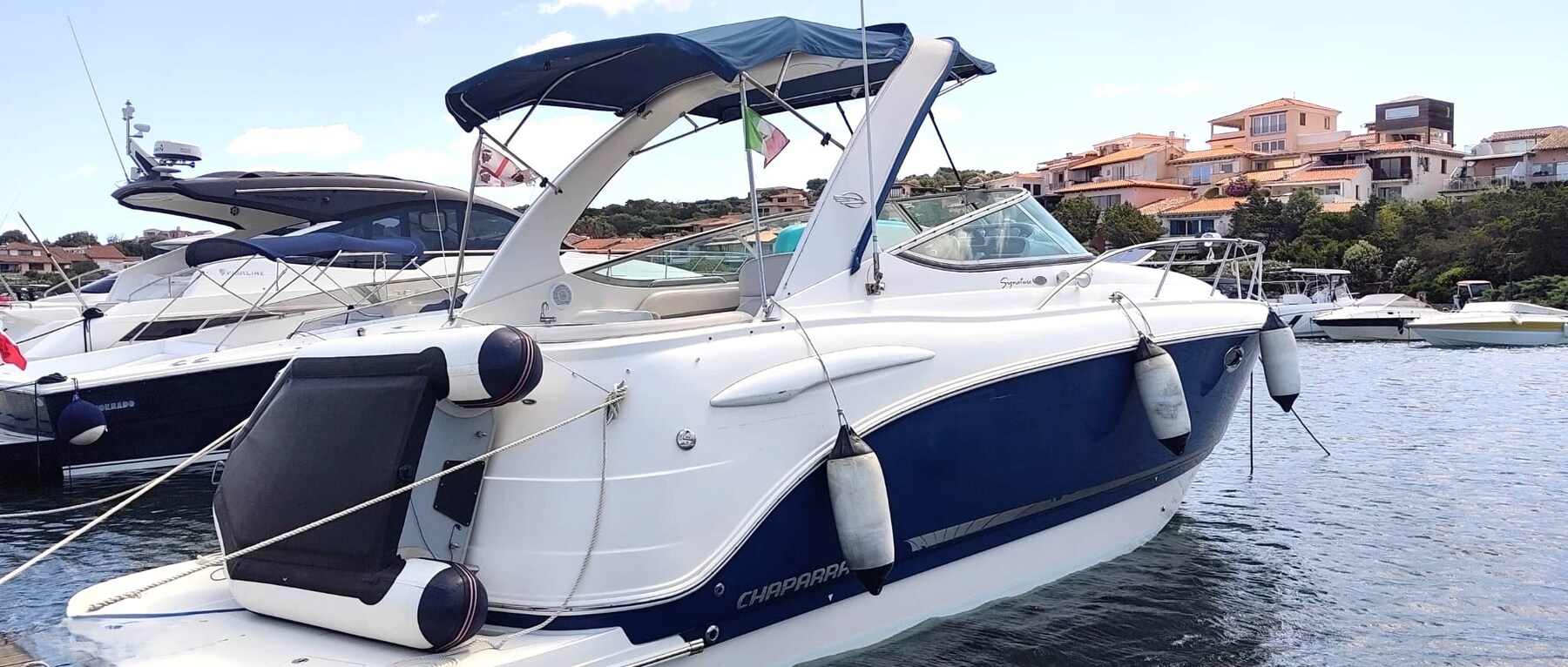 The Chaparral Signature 310 is an express cruiser that combines sleek lines, generous space, and a distinctly American build quality. The deep-V hull ensures stability and excellent performance, making it ideal for both comfortable cruising and day trips. The well-organized deck offers a large convivial cockpit and an ergonomic helm station. The interiors, in excellent condition together with the upholstery, include a convertible dinette, equipped galley, independent aft cabin and forward cabin: welcoming and functional environments that guarantee practicality and comfort on board. Accessories such as bow thruster and hot/cold air conditioning complete the set-up, which further increase its versatility. A model with attention to detail, perfect for those looking for reliability, comfort and style in a cruiser of this category.