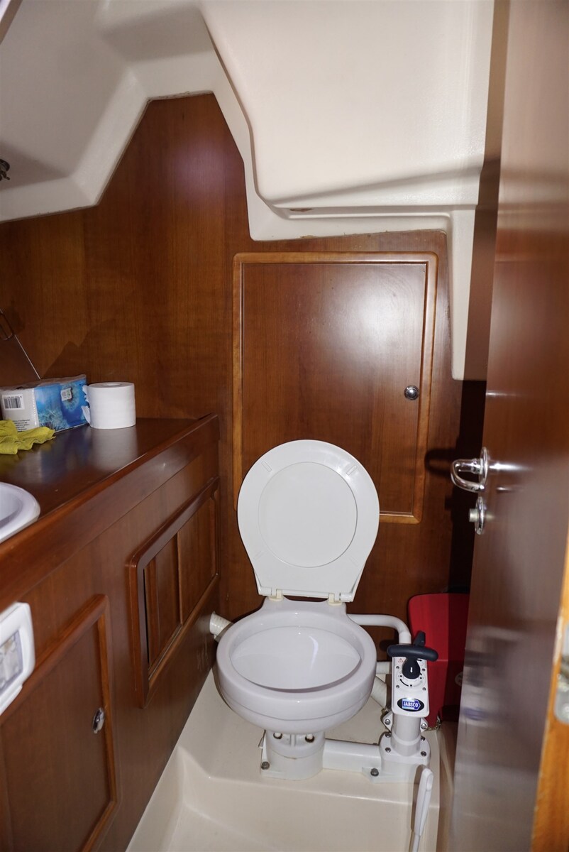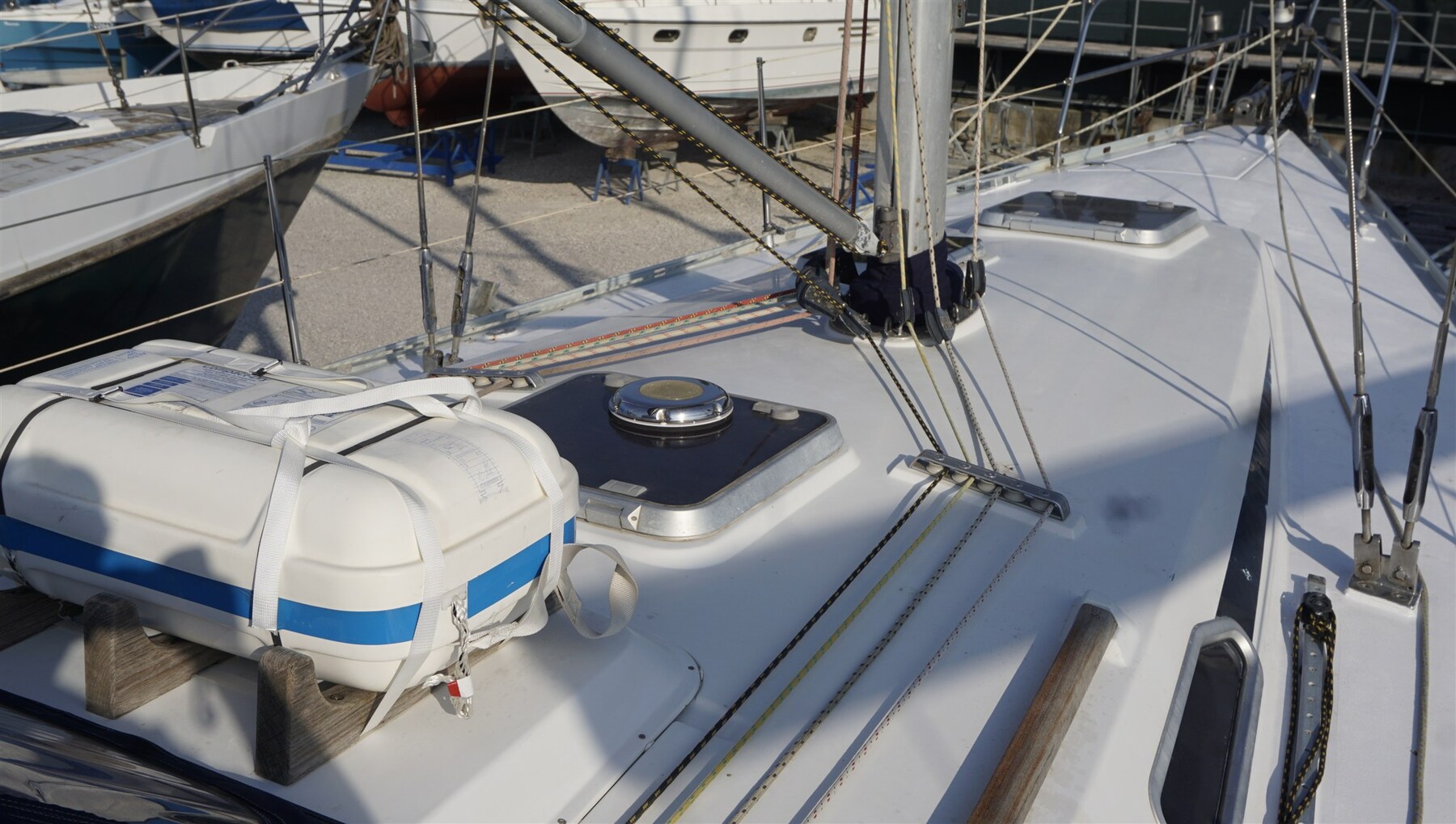 Anker (15 kg + spare, 50 m chain), Druckwasserpumpe, Landstromkabel, Cockpitdusche, Solarpanel, Gangway, manuelle Bilgepumpe, Teak im Cockpit, Landanschluß, elektrische Ankerwinde, Badeleiter, Cockpittisch, Winschen (HARKEN), Windex.