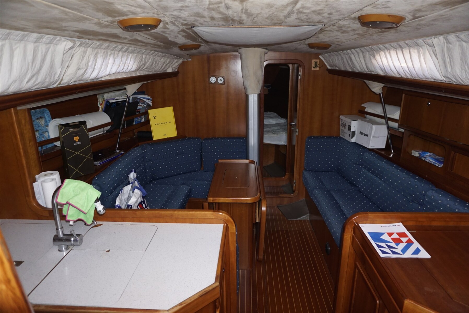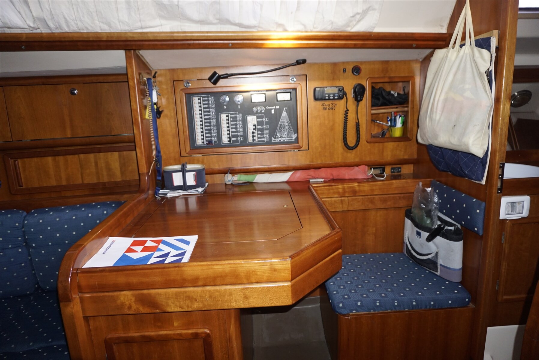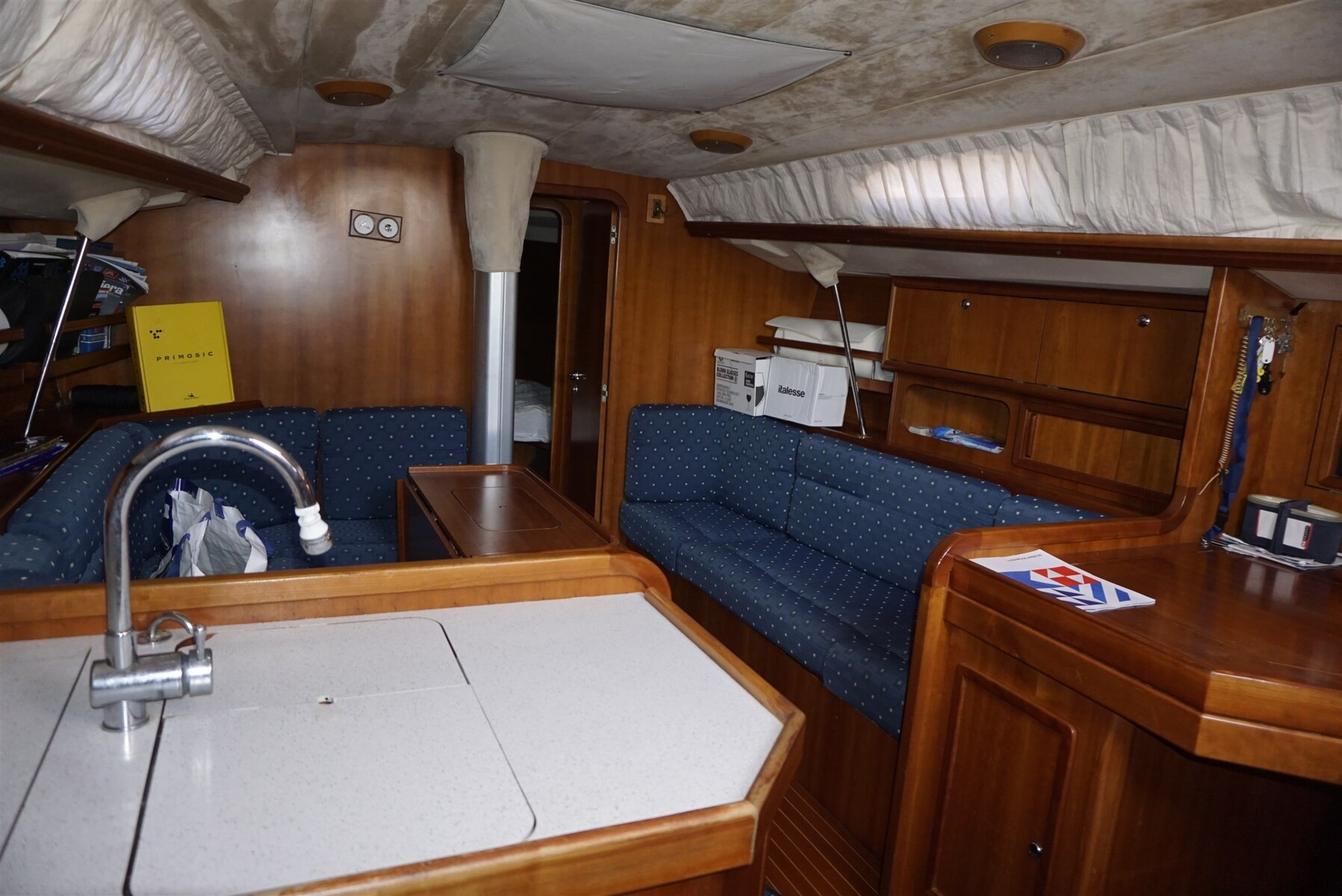 Anchor (15 kg + spare, 50 m chain), Water pressure pump, Shore power cable, Deck Shower, Solar panels, Gangway, Manual Bilge Pump, Teak Cockpit, Shorepower connector, Electric Windlass, swimming ladder, cockpit table, Winch (HARKEN), Windex.