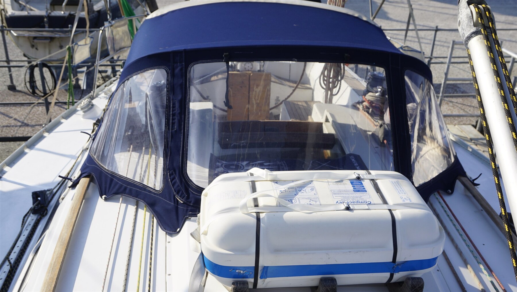 2020 hull sides revarnished, application of epoxy to the underwater hull; all-new cockpit teak; bimini + sprayhood new