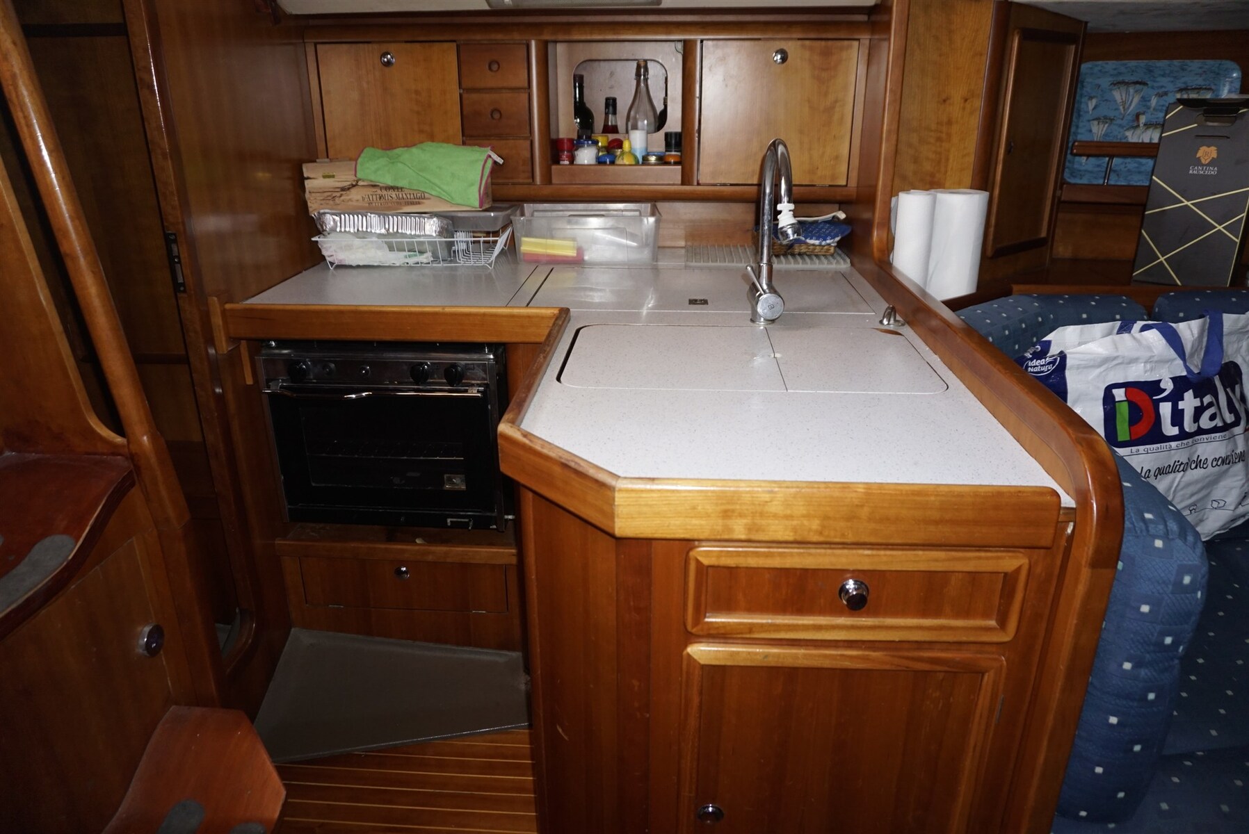 Ancre (15 kg + spare, 50 m chain), Eau sous pression, Câble d’alimentation à quai, Douche de cockpit, Panneau solaire, Passerelle, Pompe de cale manuelle, Cockpit en teck, Prise de quai, Guindeau électrique, Echelle de bain, table de cockpit, Winch (HARKEN), Windex.