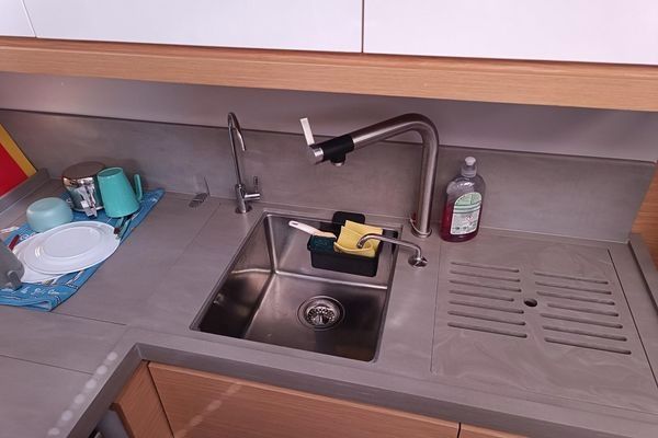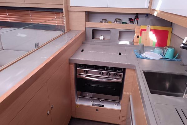 Fully equipped galley: oven, microwave, refrigerator, freezer