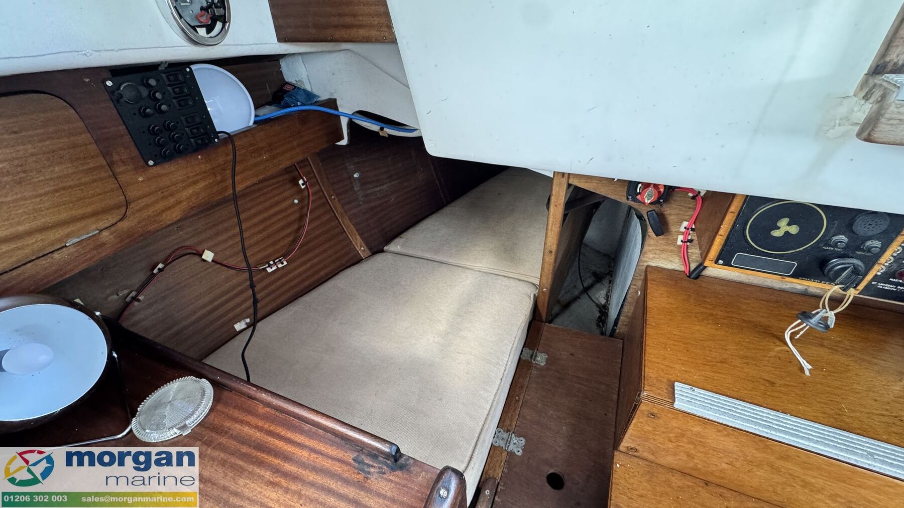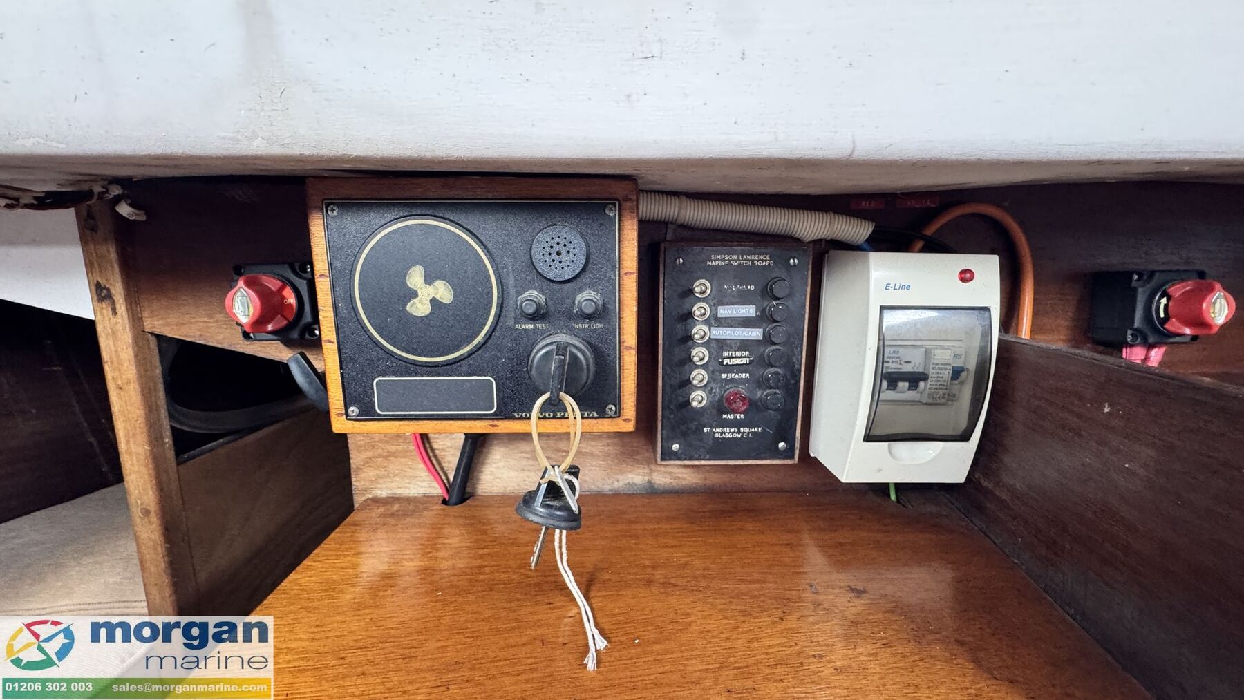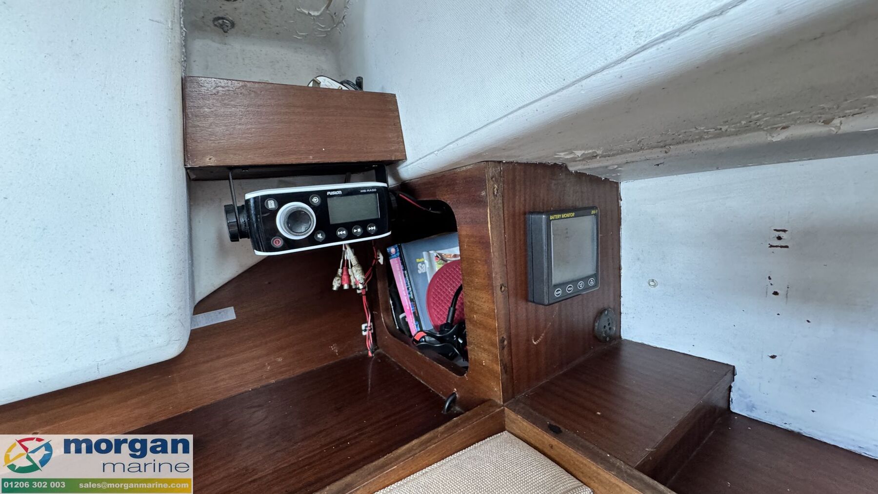 She is well equipped with electronics including a Standard Horizon chart plotter, Garmin 152 GPS with fish finder, and a Clipper GPS repeater in the cockpit, alongside a Fusion audio system with speakers for onboard entertainment. Powered by a Volvo Penta 2002 series 18hp twin-cylinder diesel engine, believed to have been installed in the mid-1980s, which offers dependable auxiliary power to complement her capable sailing performance. With her classic lines, proven design, and comfortable accommodation, this boat presents an excellent opportunity to own a characterful and capable yacht, equally suited to coastal cruising or weekend adventures afloat.