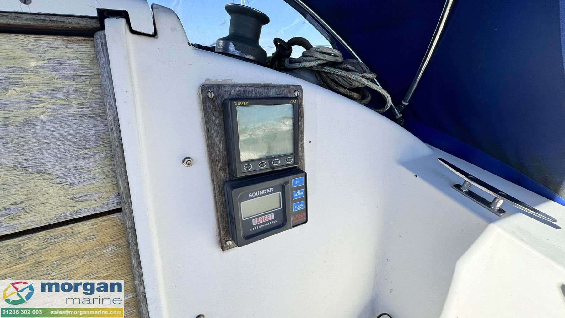 Electronics: Standard Horizon chart plotter. Garmin 152 GPS and fish finder. Clipper GPS repeater in cockpit. Fusion audio with speakers. NASA depth marine instrument. B and G Harrier log and speedometer. Swiftech VHF radio with masthead aerial. Raymarine St2000 plus tiller pilot. Navigation lights. Anchor light. Interior lights. Battery isolator switch wired to distribution board. Solar panel. Corsair compass. 12v Volt system with 2x 12v batteries (engine and domestic) charged by engine driven alternator. 240v Shore power with lead. Outlet socket. Battery charger.