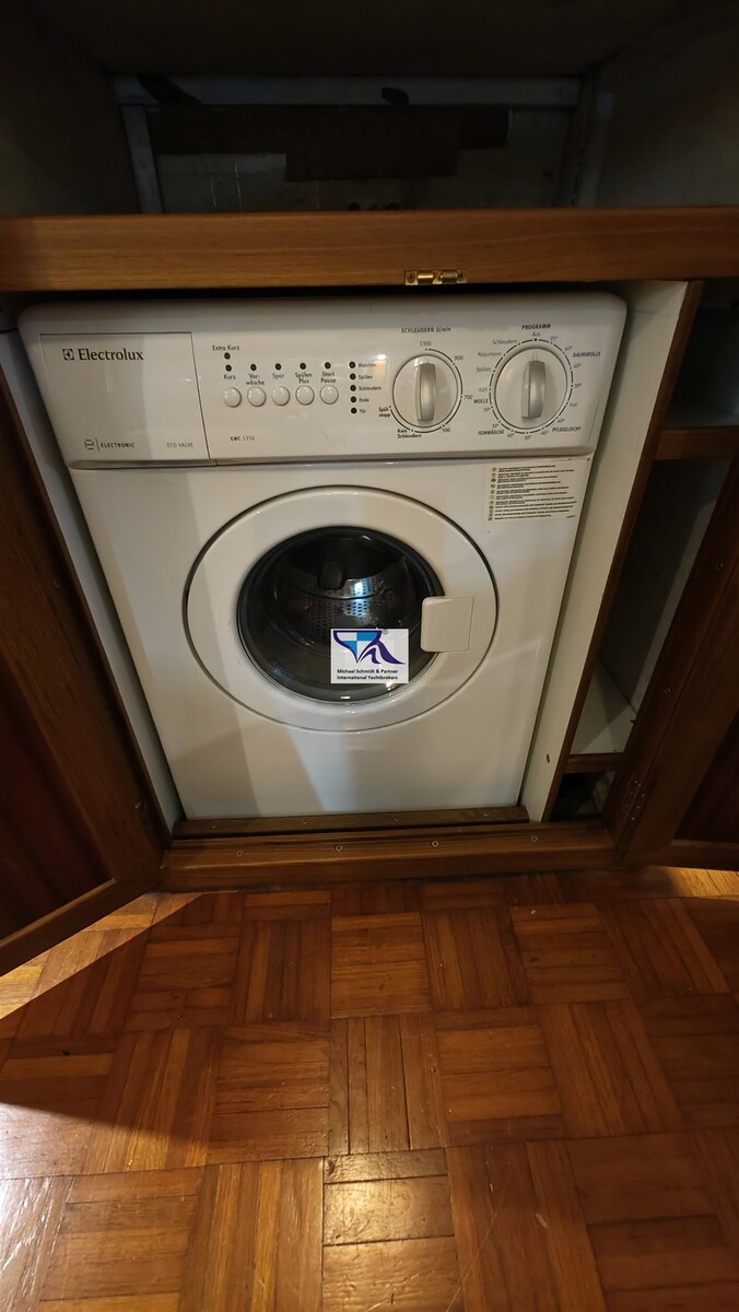 Herd (Gas, 3-flammig, neu), Backofen (neu), Kühlschrank (Kühlbox 12V unter der Salonsitzbank StB), Kompressor Kühlschrank (neu), Waschmaschine (220 V, im Salon).