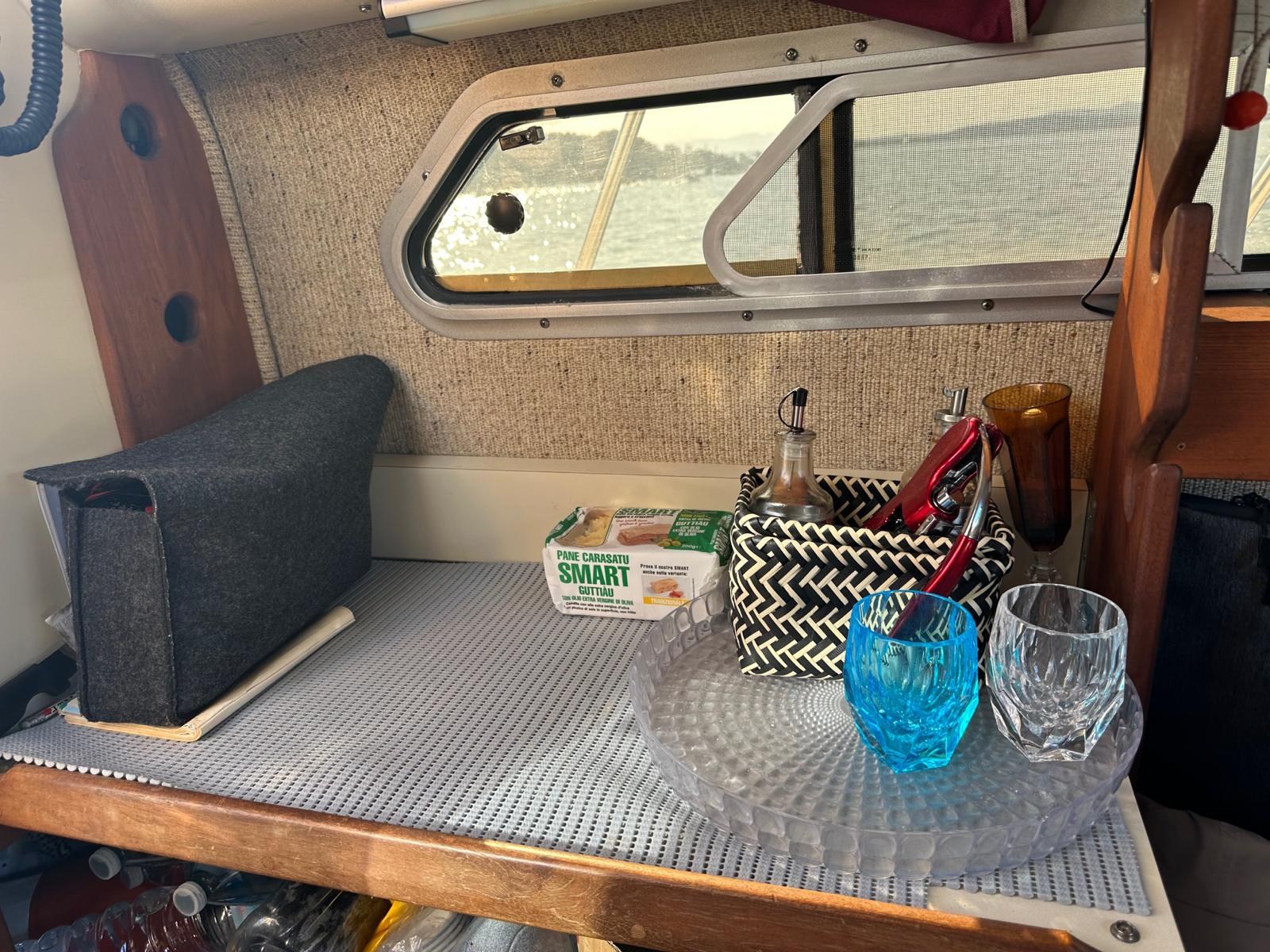 2 Kühlschrank an Deck (Pozzetto Isoterm 2024), Eisbox, Kaffeemaschine (Nespresso 2024).