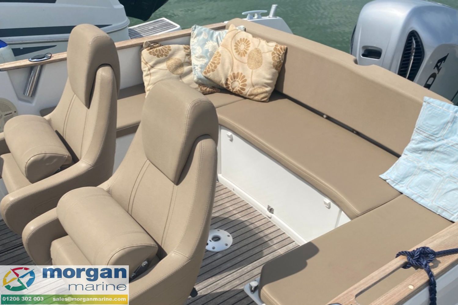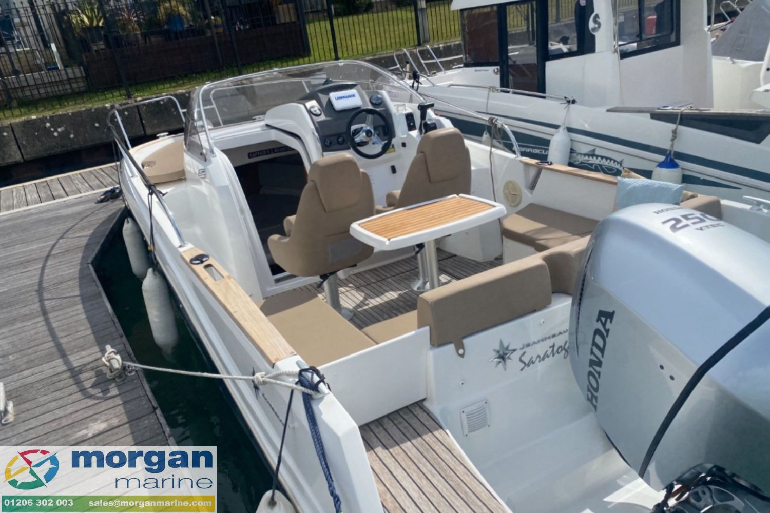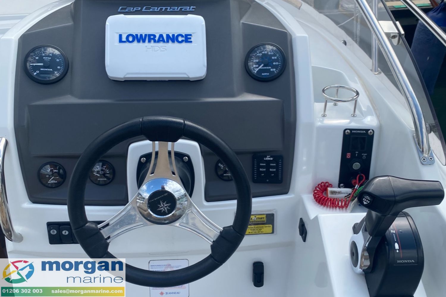 We are delighted to offer this superb 2015 Jeanneau Cap Camarat 7.5 WA. Supplied new by us and lovingly maintained by her current owner, we know this boat exceptionally well – and it shows in her condition. Powered by a Honda BF250 XU outboard, she delivers impressive performance, smooth handling and reliability, making her perfect for both relaxed cruising and exhilarating days on the water. This highly versatile walkaround offers the ideal blend of comfort and sportiness, whether youre entertaining friends, enjoying family days out, or heading off for a weekend escape. She comes well equipped with an electric windlass, electric Lenco trim tabs, and a Lowrance HDS-7 Touch combo chart plotter to make navigation simple and stress-free. Comfort is a priority, with generous bow sunbed cushions creating the perfect space to relax at anchor. Fishing rod holders are fitted for those keen to enjoy a spot of angling, while the comfortable 2-berth cuddy cabin provides practical overnight accommodation with a toilet compartment with marine toilet and holding tank. The spacious cockpit layout provides excellent seating and sociable space, while the generous bow sunpad is ideal for soaking up the sun. This is a much loved and well cared-for example of a very popular model, ready for her next owner to step aboard and enjoy immediately. Viewing is strictly by appointment only. Contact Morgan Marine today to arrange your viewing.