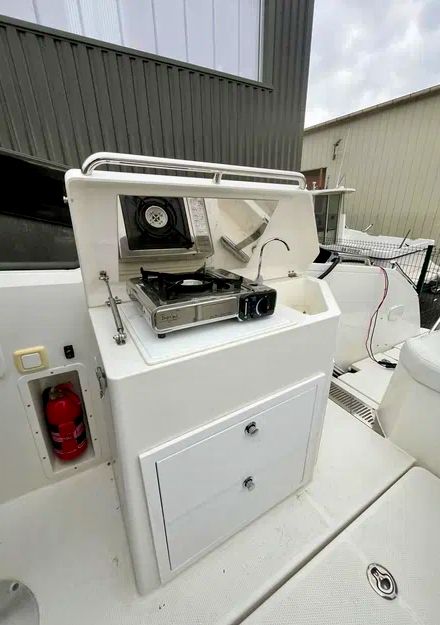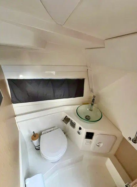 Le bateau dispose d’un niveau d’équipement rare pour sa catégorie : propulseur d’étrave et de poupe, électronique complète (GPS, sondeur, VHF, AIS), circuit 12V/220V, panneaux solaires, bimini, WC marin, réfrigérateur, bain de soleil avant et arrière, douchette, cockpit modulable, etc.