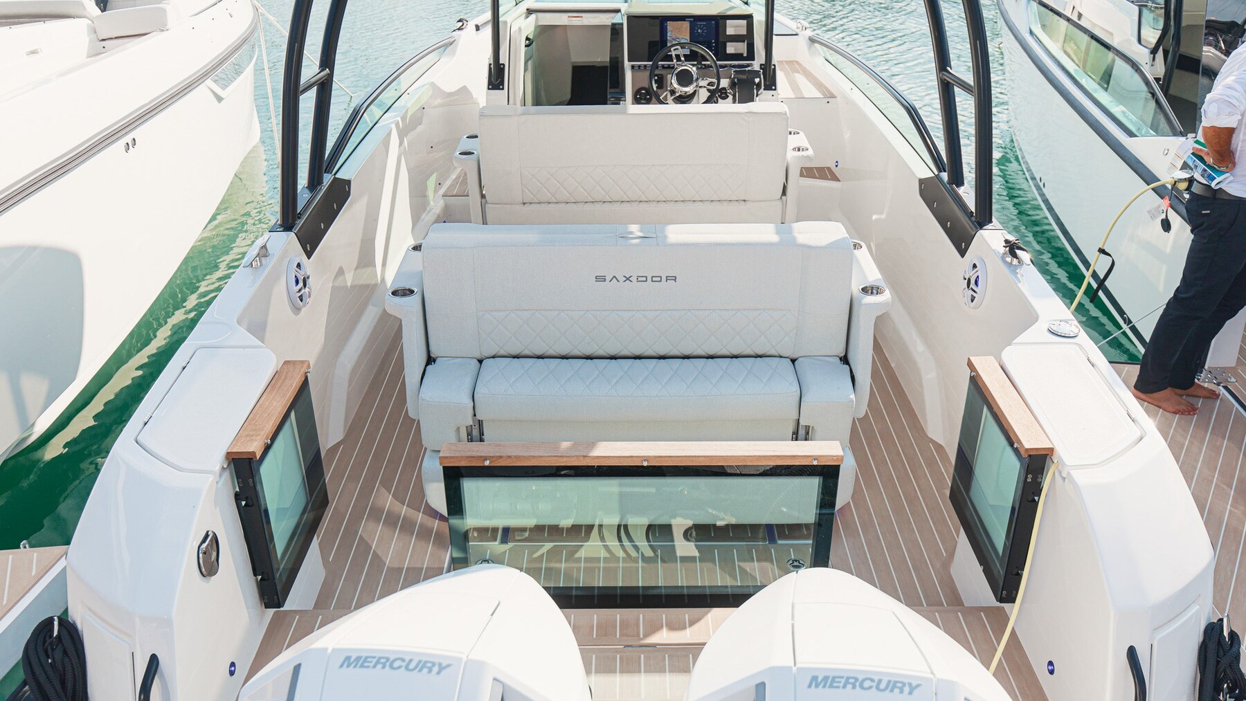 Die Saxdor 270 GTO wurde nach der Saxdor-Philosophie entwickelt, mit einem leichten Double-Redan-Rumpf, der sich auf dem Wasser weich verhält. Dieses Modell bietet die Leistung, Geschwindigkeit und Kraftstoffeffizienz, für die frühere Versionen bekannt waren. Der umgekehrte Bug mit einem sehr tiefen V-förmigen Einstieg reduziert den Aufprall auf die Wellen, verbessert die Gesamtstabilität des Bootes und macht das Fahren angenehmer. Die leichte und robuste Konstruktion, die mit der Vakuuminfusionstechnik hergestellt wird, ermöglicht es Ihnen, ein Boot zu haben, das leicht getrailert werden kann und einfach zu Wasser gelassen oder geborgen werden kann. Die 270 GTO ist die ideale Wahl für alle, die die Sonne lieben: Dank der beiden Sonnendecks – eines am Bug und eines am Heck – haben Sie viel Platz zum Entspannen. Das hintere Sonnendeck kann bei Bedarf zu einer komfortablen Essecke umgestaltet werden. Kontaktieren Sie uns für weitere Informationen