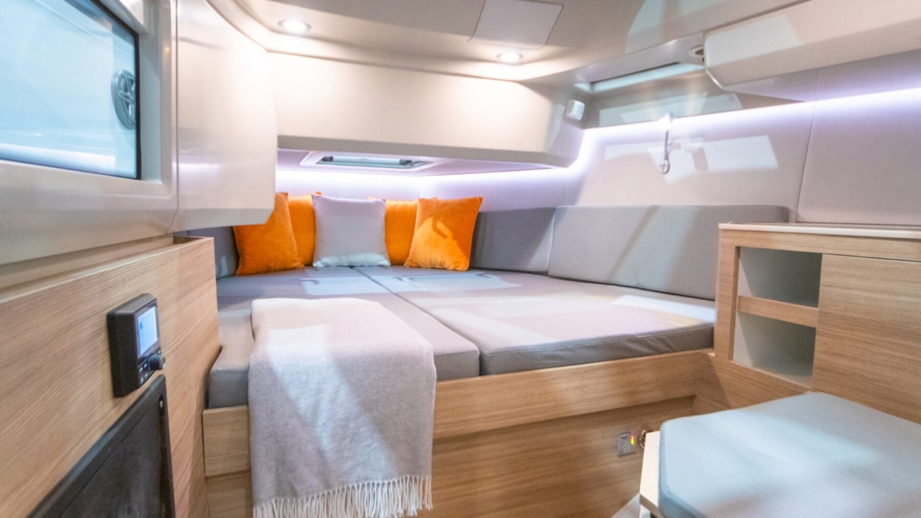 Elektronische Motorensteuerung, Yacht PC (Mercury), Logge (Simrad), Echolot (Simrad), GPS (simrad), Kartenplotter (Simrad NSX12), Copilotensitz.
