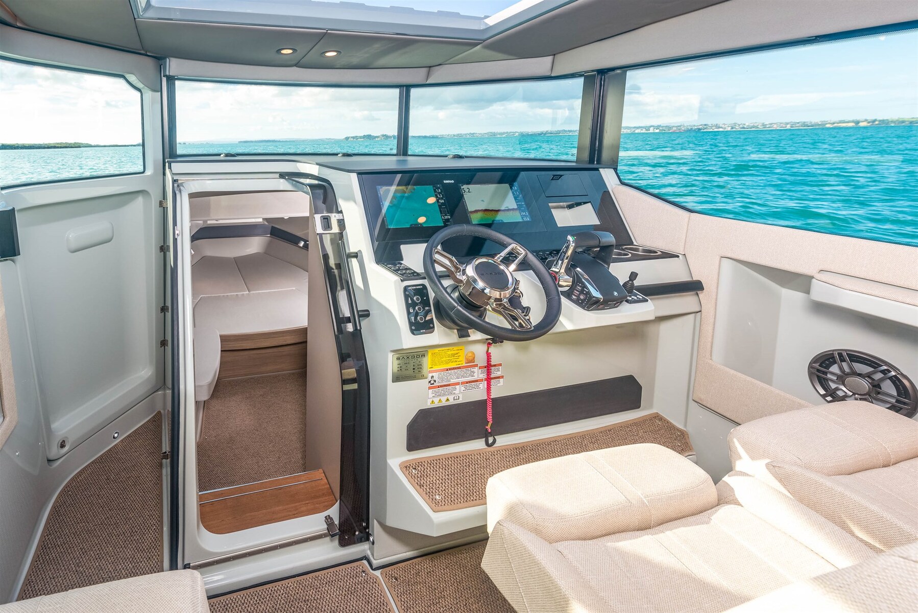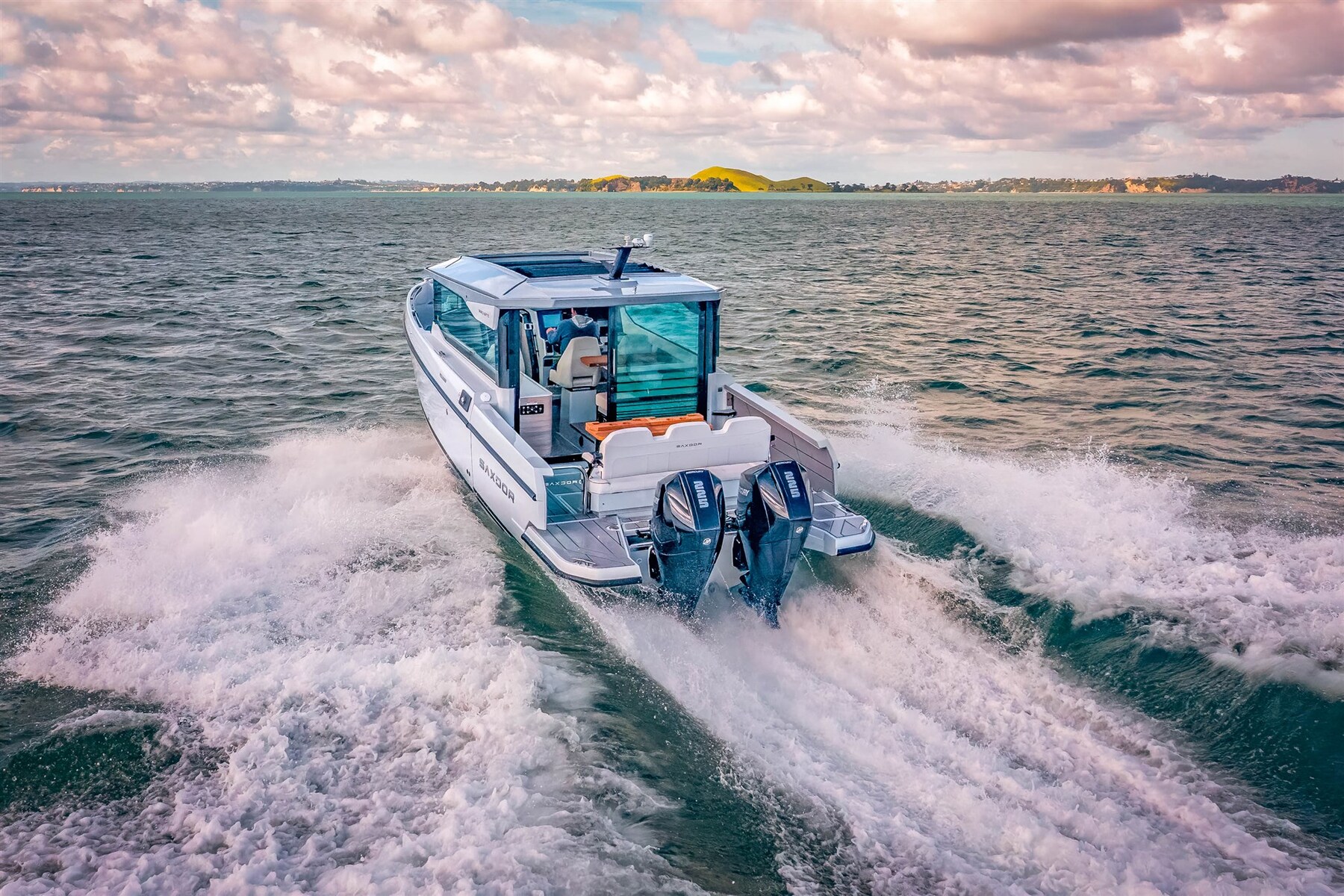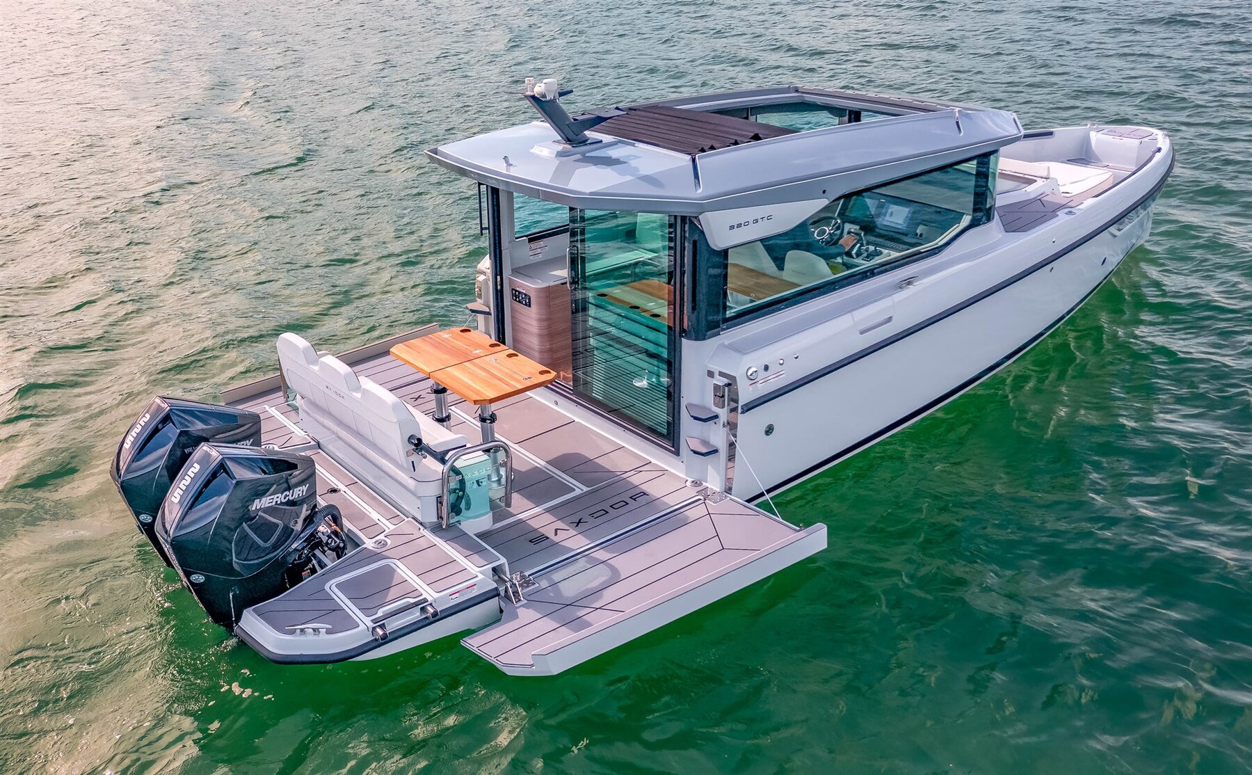 Le Saxdor 320 GTC partage le même design de coque raffiné, efficace et axé sur la performance que le modèle 320 GTO. Un centre de gravité bas, un faible poids, une proue pointue et une coque à double pas infusée sous vide créent une expérience de conduite unique dans tous les types de mers et de conditions météorologiques, partout dans le monde. Le Saxdor 320 GTC est disponible avec trois options de groupe motopropulseur Mercury, allant de 300 ch à 600 ch. Vous pouvez choisir l’option monomoteur, ou l’option bimoteur avec 2 x 225 ch ou 2 x 300 ch, le véritable « Grand Turismo de la mer ». Le Saxdor 320 GTC redéfinit l’expérience du mouvement à bord. Grâce à son concept unique d’une timonerie spacieuse et d’un accès facile à la proue, se déplacer en bateau n’a jamais été aussi facile. Saxdor croit au luxe de l’espace inutilisé. Contactez-nous pour chaque détail.