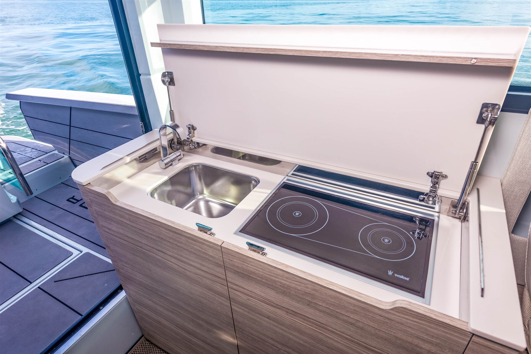2 Motor Alarm, Bilge Alarm, 4 Accu's, Elektrische trimflappen, Hardtop, Brandblussysteem, Sfeerverlichting, Platform (con terrazze apribili), Handmatige bilgepomp, Ingangsdeur, Hoorn.