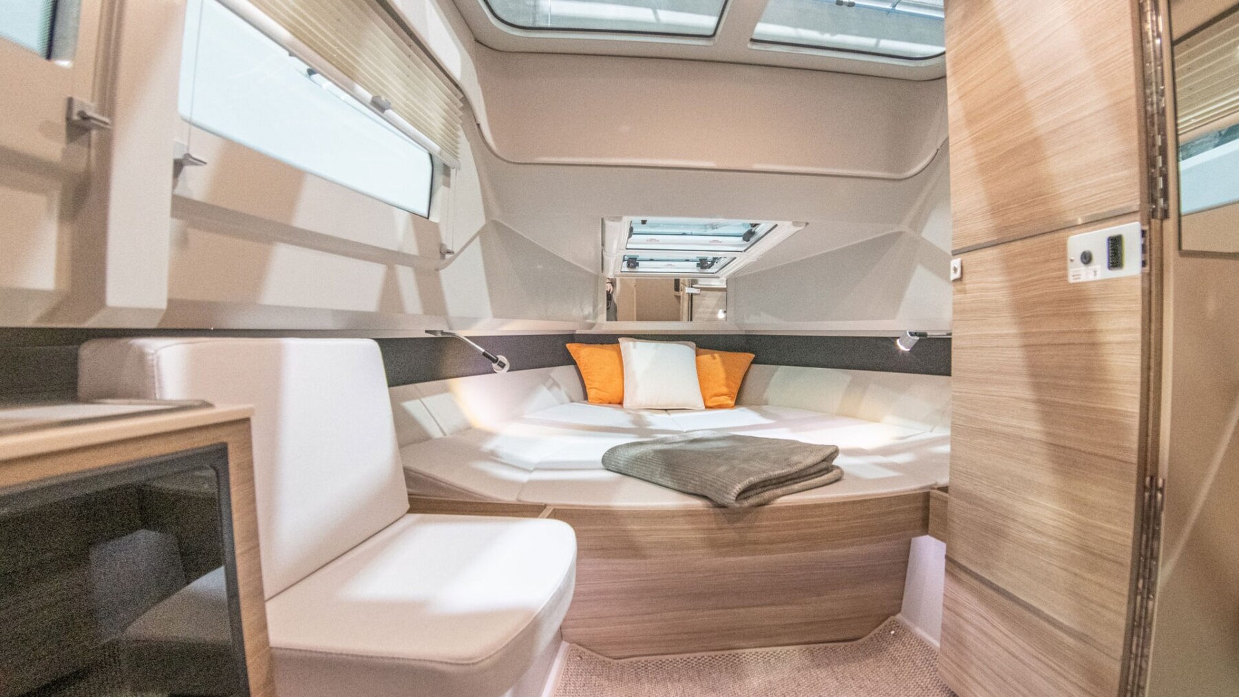 Die Saxdor 320 GTO ist die perfekte Balance aus italienischem Design, amerikanischer Funktionalität, deutscher Qualität und einem Preis im französischen Stil. Ausgestattet mit einem T-Top und begehbaren Seitenstegen bietet es ein raffiniertes Design, eine starke Leistung mit Außenbordmotoren und einen effizienten und wirtschaftlichen Rumpf beim Segeln. Alle drei Versionen (GTO, GTC und GT) teilen diese Besonderheiten. Die Konfiguration mit einem einzigen 300 PS starken Mercury V8-Motor ermöglicht es, eine Höchstgeschwindigkeit von 40 Knoten zu erreichen, mit einer komfortablen Reisegeschwindigkeit von etwa 30 Knoten. Mit zwei 300-PS-Motoren erreicht die Saxdor 320 dagegen locker mehr als 50 Knoten und hält eine optimale Geschwindigkeit zwischen 20 und 40 Knoten. Das bis zum Bug verlängerte Sonnendeck und die Essecke, die sich in einen Ruhebereich verwandeln lässt, bieten ausreichend Platz, um sich hinzulegen und die Sonne zu genießen. Darüber hinaus verwandelt die umklappbare Rückenlehne die Vordersitze mit einer einfachen Geste in bequeme Bänke, die nach vorne gerichtet sind, um die Gäste zu begrüßen. Kontaktieren Sie uns für weitere Details.