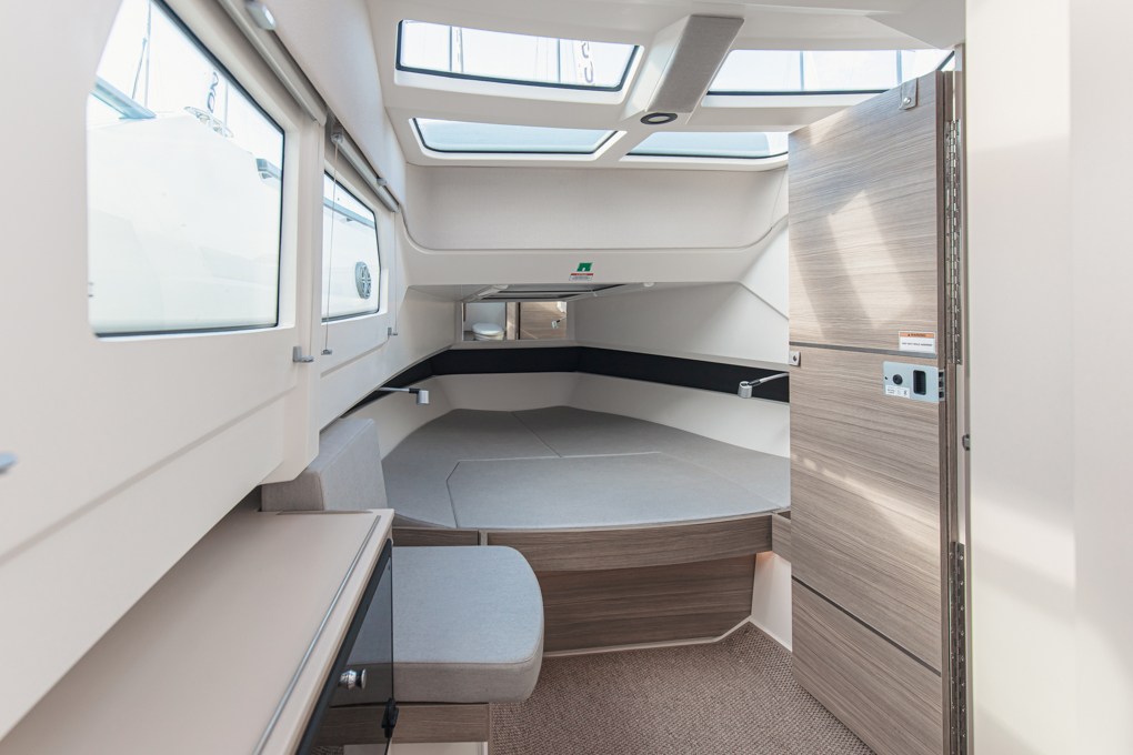 De Saxdor 320 GTO is de perfecte balans tussen Italiaans design, Amerikaanse functionaliteit, Duitse kwaliteit en een prijs in Franse stijl. Uitgerust met een T-top en loopbruggen aan de zijkanten, biedt het een verfijnd ontwerp, krachtige prestaties met buitenboordmotoren en een efficiënte en zuinige romp tijdens het zeilen. Alle drie de versies (GTO, GTC en GT) delen deze onderscheidende kenmerken. De configuratie met een enkele 300 pk sterke Mercury V8-motor maakt het mogelijk om een maximale snelheid van 40 knopen te bereiken, met een comfortabele cruise rond de 30 knopen. Met twee motoren van 300 pk daarentegen overschrijdt de Saxdor 320 gemakkelijk de 50 knopen, met behoud van een optimale snelheid tussen 20 en 40 knopen. Het zonnedek dat zich uitstrekt tot aan de boeg en de dinette die kan worden omgebouwd tot een ontspanningsruimte bieden voldoende ruimte om te liggen en van de zon te genieten. Bovendien verandert de neerklapbare rugleuning met een eenvoudig gebaar de voorstoelen in comfortabele banken die naar voren zijn gericht om gasten te verwelkomen. Neem contact met ons op voor meer informatie.