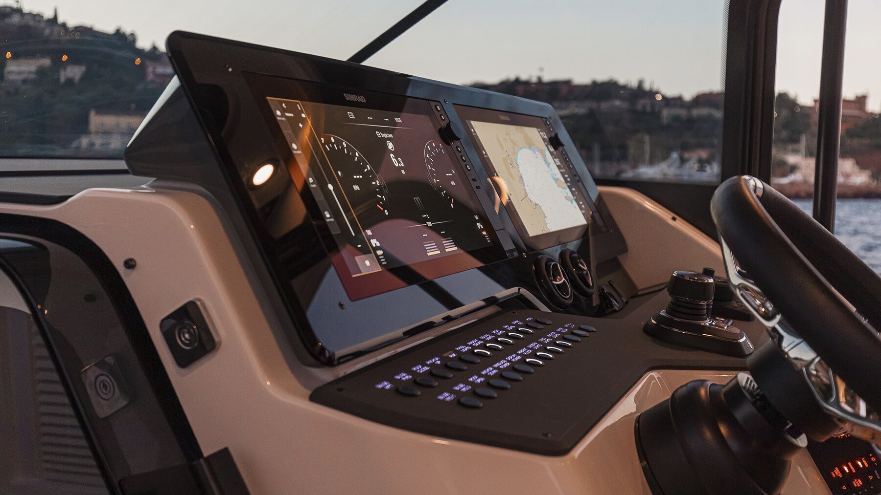 AIS, Бортовой компьютер, 2 Display (Simrad), DSC, Джойстик, Мониторинг расхода, Плоттер с GPS антенны, Панель управления, Место второго пилота.