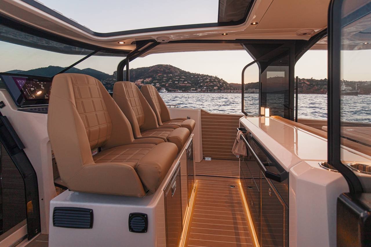Le Saxdor 400 GTS offre l’expérience ultime en plein air : un pont complet pour se promener, une console de pilotage élégante protégée par du verre et des terrasses pliantes qui brouillent la frontière entre le bateau et la mer. Avec des sièges modulaires et des bains de soleil convertibles, chaque instant à bord est transformé, que vous souhaitiez vous détendre, socialiser ou courir à plein régime. Le 400 GTS est propulsé par deux moteurs hors-bord (jusqu’à 850 ch) et navigue sur une coque à double pas avec un 21° V, assurant une vitesse dynamique et une réactivité exceptionnelle. Construit avec une technique légère en fibre de verre avec infusion sous vide, il est conçu pour un confort maximal même pendant les plus longues journées en mer. N’hésitez pas à nous contacter pour réserver le vôtre !
