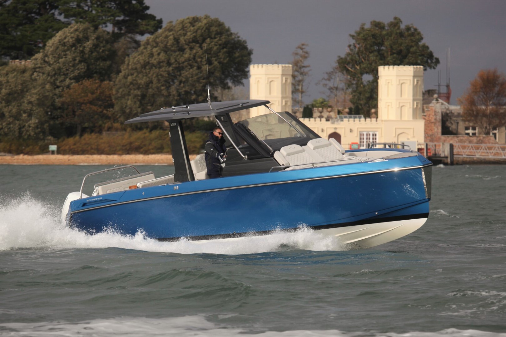 The new V33 is the latest offering from Schaefer with clever contemporary design features, this sporty walk-around boat coupled with class leading accommodation has the ability to thrill at sea and please at rest. This model has the awesome twin Mercury 300HP V8 Outboards with power steering providing outstanding performance. The V33 has spacious external areas with its open bow and ample aft cockpit, The surprisingly spacious cabin offers full height headroom and plenty of space for two people to spend the weekend comfortably. Enjoy life at sea with your family, fish with friends, play water sports or simply take an off-the-grid weekend in this amazing new model.