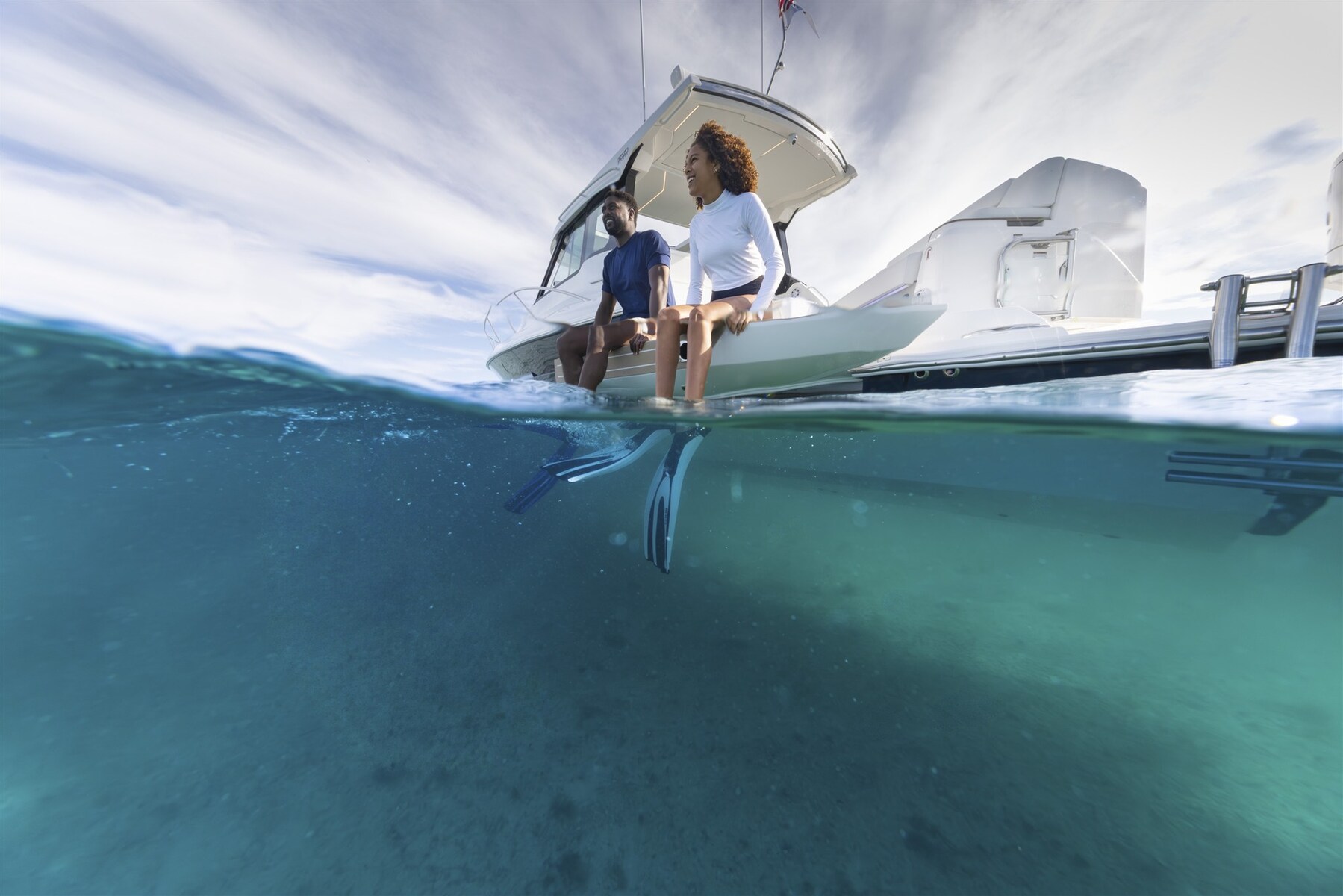 The 39 LE lives at the intersection of legacy and luxury; rooted in the LE Series pillars of innovation and versatility while remaining committed to the heritage of Tiara Yachts’ timeless design. Featuring a salon social zone with versatile seating, the helm seat rotates inward while the companion seat adjusts to form a comfortable L-shaped lounge, ideal for entertaining. The aft cockpit offers a customizable experience, featuring your choice of the Buffet Lounge or the Adventure modules. The aft facing cockpit seat with storage complements either module. The galley is thoughtfully positioned below to enhance the social space above deck. Outfitted with a sink, microwave, cooktop, and premium amenities, the space is designed to support effortless entertaining. Two well-appointed sleeping quarters offer comfort on longer cruises and a three-zone head complete the space.