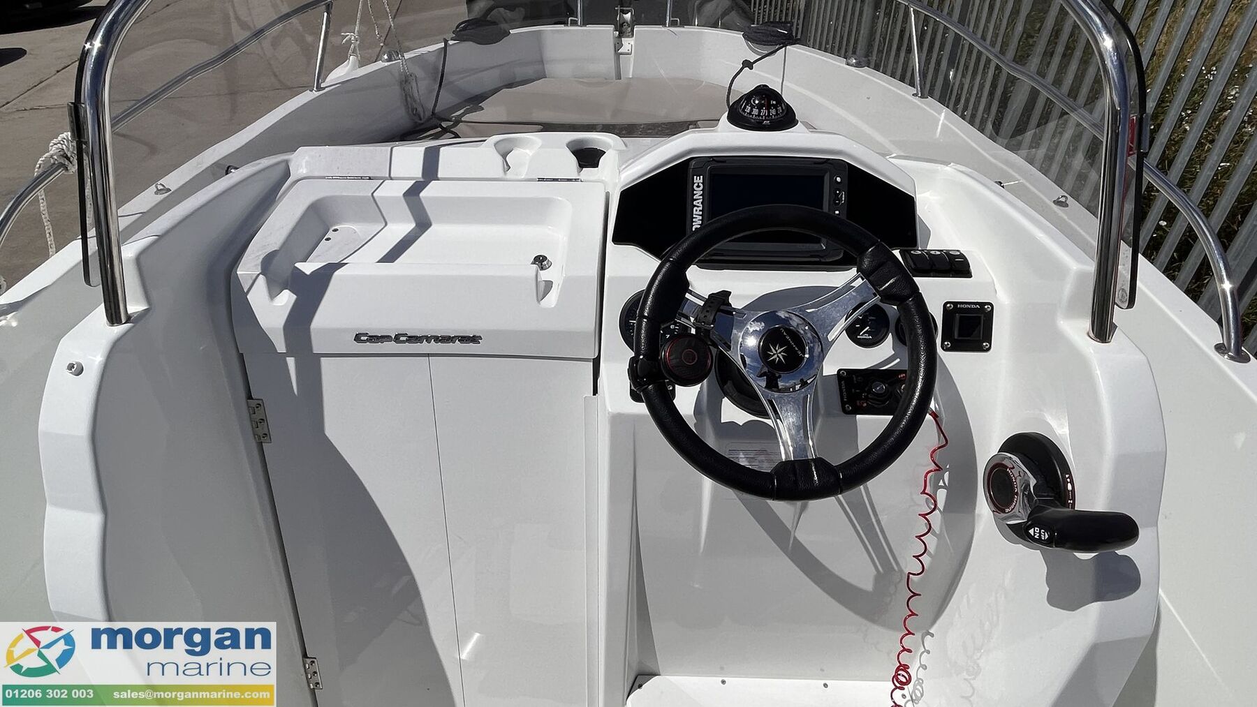 Machinery: Honda BF100 outboard engine with power trim and tilt. Bilge pump. Fuel capacity: 100L - with outside fill.