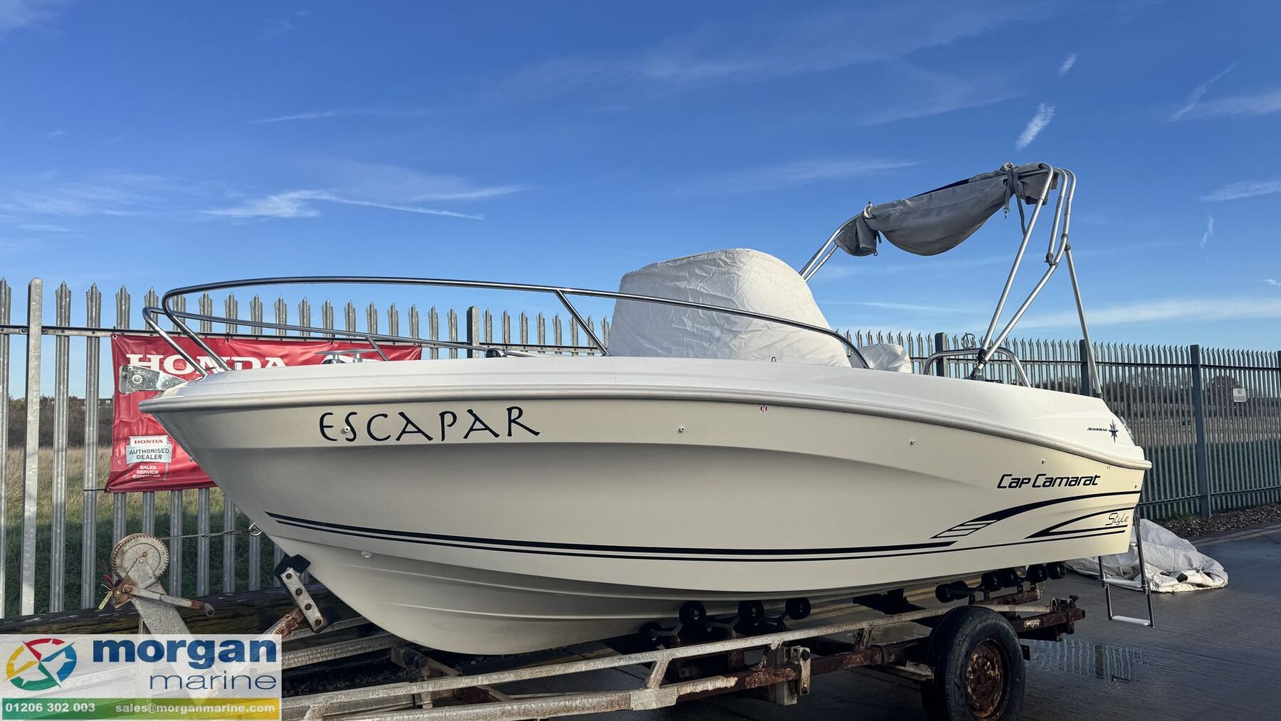 This super 2017 Jeanneau Cap Camarat 5.5 Centre Console Series 2, originally supplied by us new and owned by just two owners, was first registered in 2018. Powered by a reliable Honda BF100 outboard with approximately 149 hours, it offers outstanding versatility for relaxed cruising, water sports, sunbathing, entertaining, and effortless beaching. The centre-console layout provides unrestricted movement from bow to stern on both the port and starboard sides, while the console cuddy and additional storage compartments offer impressive space for gear and equipment. The boat comes complete with full bow sunbathing cushions, table, individual seats and console covers, a full overall cover, a Bimini, and useful extras including a Lowrance chartplotter. Well presented and attractively presented, this is a fantastic opportunity. Early viewing is strongly recommended.