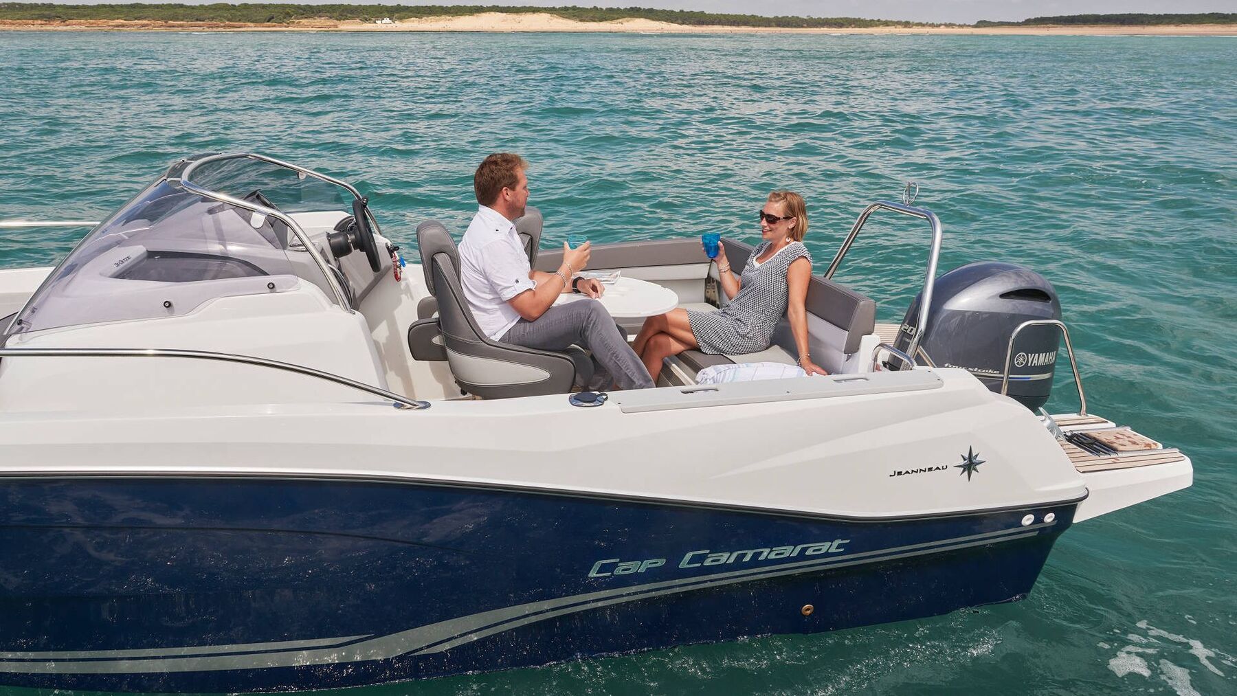 Jeanneau Cap Camarat 6.5 Walk Around - Series 3 sports boat with Suzuki DF175 outboard engine. Saving of over £6,000 from the RRP and complete with over £18,500 of options including Trim Level Premiere, Garmin electronics, Fusion audio, electric windlass, folding benches, front sundeck mattress and folding aft sundeck. CE category C for 8. The Walk Around version features a 2 berth cuddy. This boat is perfect for family adventures or fishing trips. This 2026 model year Jeanneau Cap Camarat 6.5 WA is available to order for UK delivery - alternative specifications in stock at Morgan Marine. NB - library photos may not reflect specification of boat.