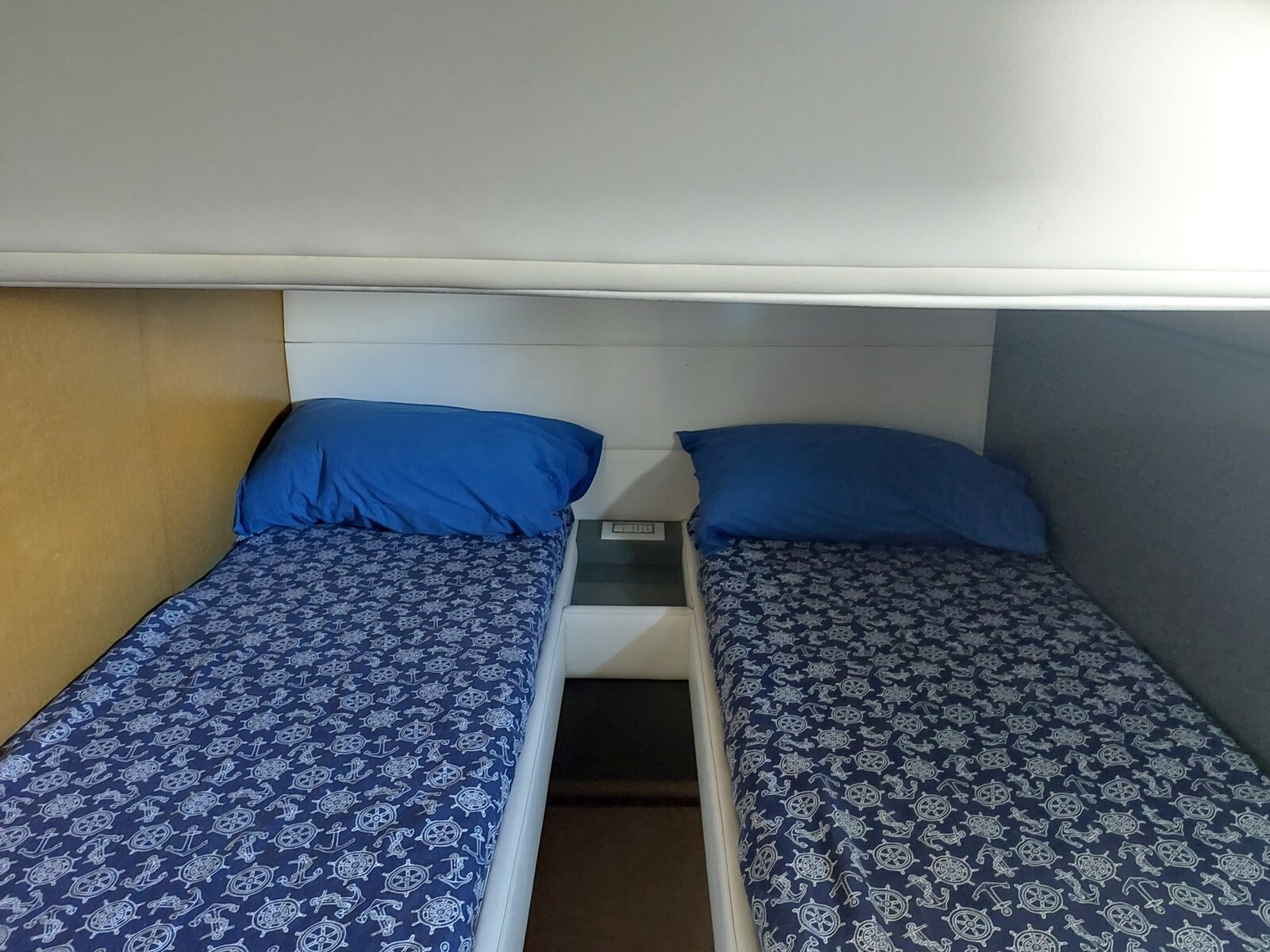 Beautiful Mochi 44 Fly. Completely overhauled. Engines landed and rebuilt in 2024. Wide spaces, excellent seaworthiness, an eternal boat. This boat offers three cabins and two bathrooms, with very large and comfortable spaces dedicated to conviviality. The engines, two Mercruiser 480s are in perfect and impeccable maintenance and guarantee a comfortable and economical cruise. With new 2023 cushions and bathrooms redone in the same year, the boat looks immaculate, to be seen and tested.