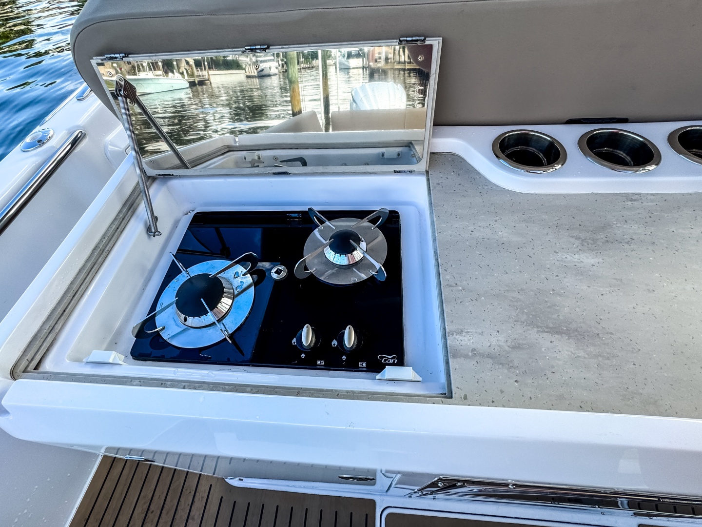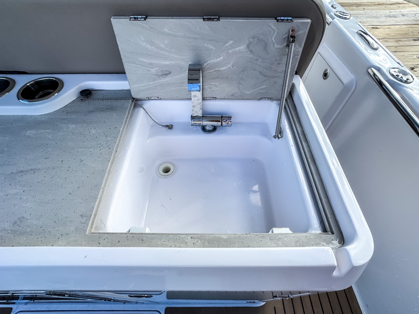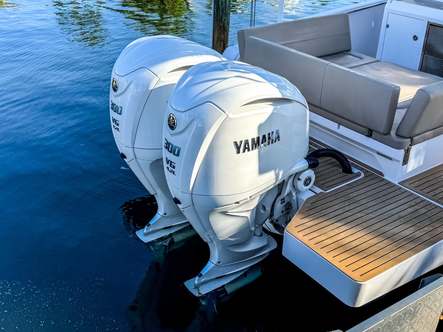 - Large aft platform and generous storage space in lockers under the bar and seating.
