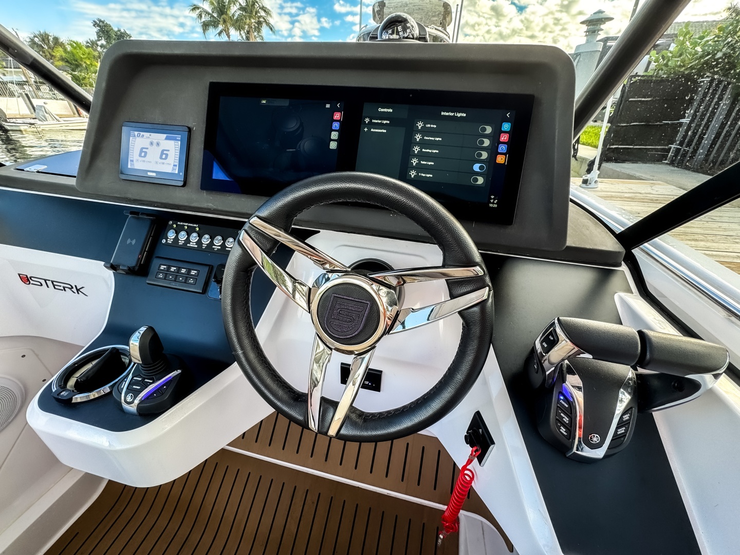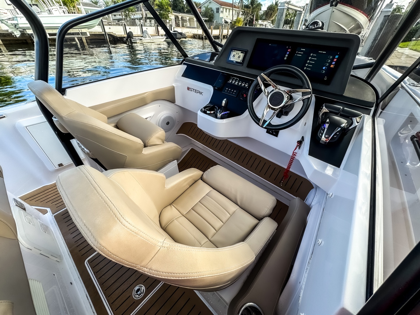 The driver’s position feels ergonomic, intuitive, and visually stunning. Sport Seats with flip-up bolsters and side support allow seated and standing helming. Angled dash designed for full visibility and glare reduction, even at high speed.