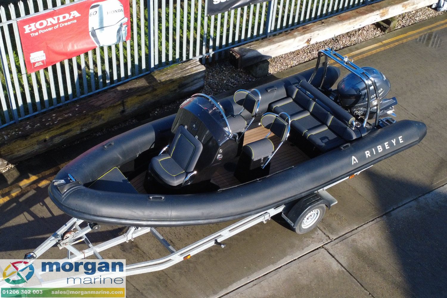 2023 Ribeye A600 – Yamaha F130 AETL with only 66 Hours! This nearly new Ribeye A600 is the ultimate all-rounder – perfect for thrilling days of water skiing or relaxed family outings. Powered by a Yamaha F130 AETL outboard engine with just 66 hours, this boat combines performance with reliability. It comes fully equipped with a SBS roller trailer, Garmin chart plotter, Garmin 215i VHF radio, and a Fusion audio system with high-quality speakers. The deck is beautifully illuminated with low-level blue LED lighting, enhancing its stylish, ready-to-go look. Designed for water sports, it includes an A-frame with tow eye, jockey seats, a boarding platform with ladder, Hypalon tubes, and Flexi-teak flooring. The Ribeye A600 stands out for its exceptional safety, strength, stability, speed, and comfort. Don’t miss out – contact Morgan Marine now for an early viewing. This boat won’t be here long!