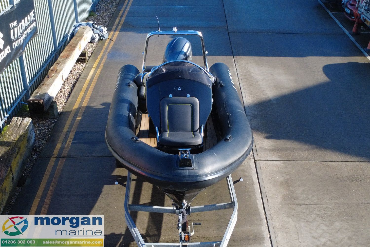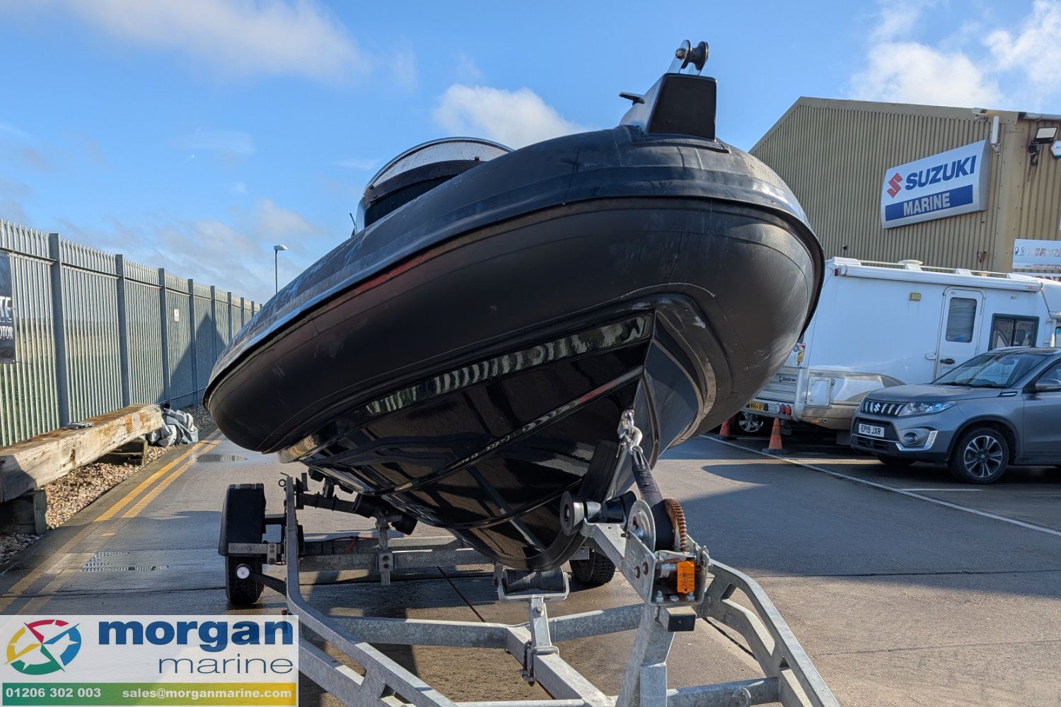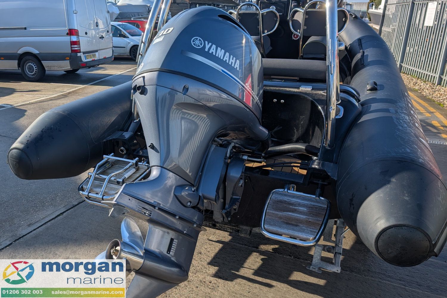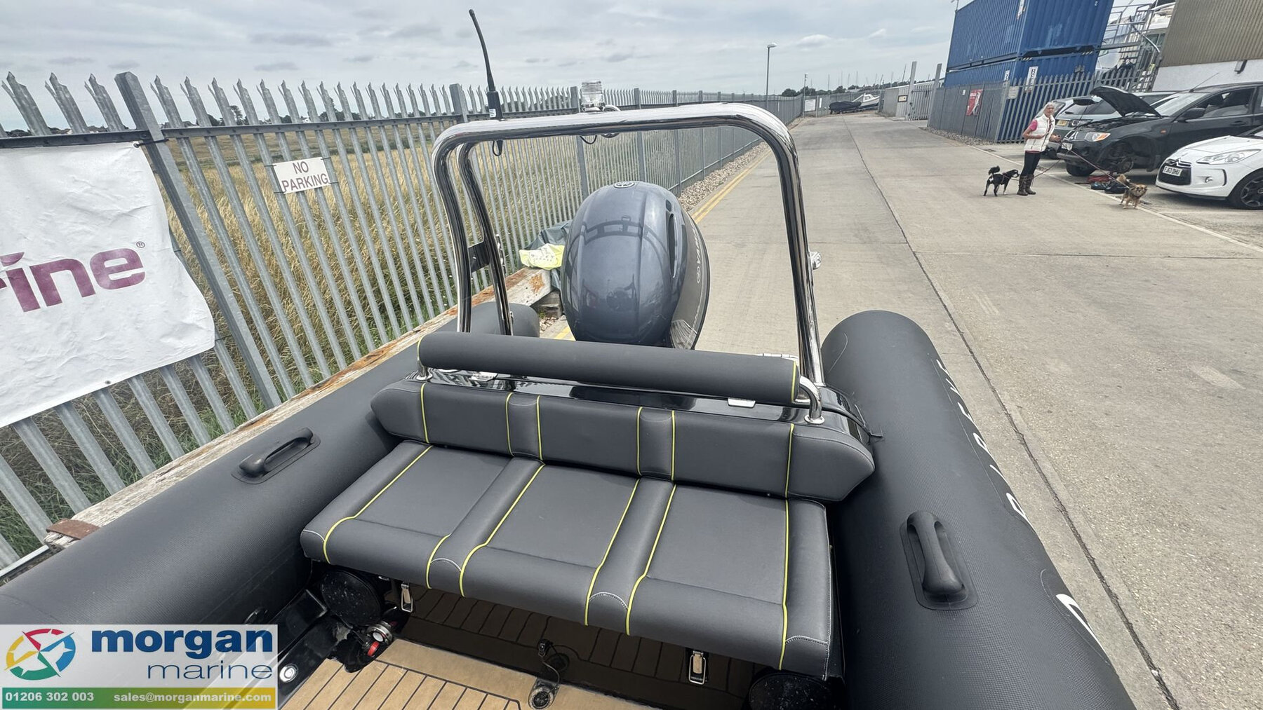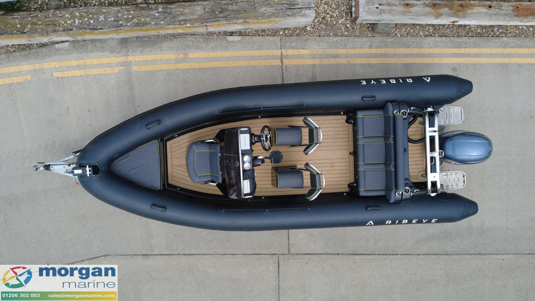 Deck: Black Hypalon tubes. GRP hull. Bow roller. A-frame with tow eye. Ribeye A600 full tailored mooring cover. Mooring cleats on A-frame and bow. Grab handles. Rope handles. Stainless steel fishing rod holder flush mounted. Bathing platform with fold down boarding ladder. Anchor locker with anchor, chain and rope. Teak decking with console footplate. Self draining deck.