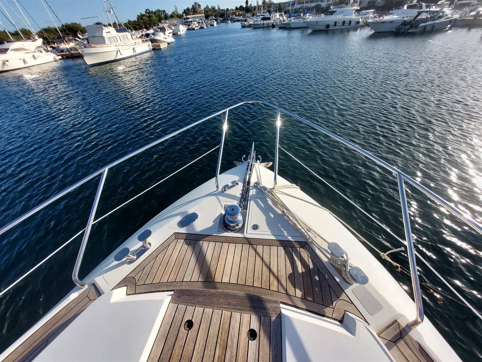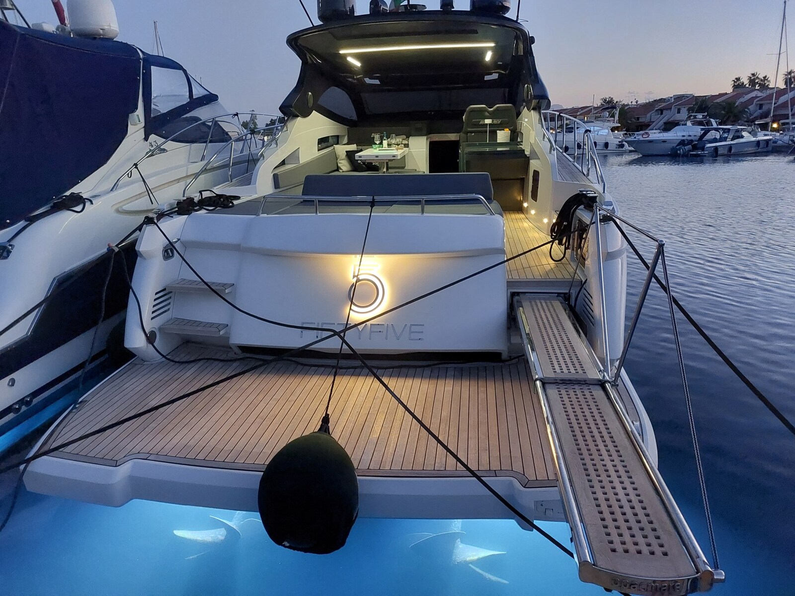 Новый INfive не имеет себе равных. Самый быстрый в своей категории с максимальной скоростью 45 узлов. 3 каюты + матрос или гараж в 16 метрах. Для тех, кто хочет выйти из коробки. IN Five оснащен двигателем MAN i6 мощностью 800 л.с., а движение гарантируется надводными трансмиссиями Top-System, которые при поддержке системы "Easy-trim" гарантируют яхте не только отличные эксплуатационные характеристики, но и глиссирование на низких скоростях. Маневренность будет возложена на джойстик на посту управления. Fiftyfive добавляет носовое подруливающее устройство и кормовое подруливающее устройство для максимальной управляемости даже при швартовке в критических условиях. Как новая и готовая к любым испытаниям, эта спортивная яхта последнего поколения только и ждет нового владельца, чтобы испытать другие захватывающие сезоны. Возможность принятия на себя текущего договора аренды.
