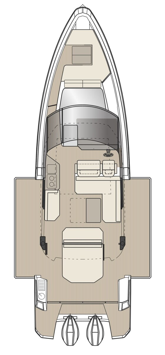 Saxdor 400 GTC разработан для двойных подвесных двигателей и использует эксклюзивную морскую архитектуру, гарантирующую незабываемые впечатления от плавания. Главная палуба отличается инновационным дизайном с рулевой рубкой во всю ширину, оптимизирующей внутреннее пространство. По сравнению с GTO, GTC добавляет нотку роскоши благодаря большим стеклянным поверхностям, которые создают светлую и гостеприимную среду, защищенную от непогоды. Планировка позволяет напрямую соединиться с боковыми террасами, чтобы отдых был похож на частный остров. Под палубой две лестницы ведут в двухместные каюты - носовую и среднюю - которые имеют общую ванную комнату; Также доступна дополнительная третья кровать для детей. Каждая деталь продумана с элегантностью и функциональностью. Свяжитесь с нами для получения дополнительной информации.