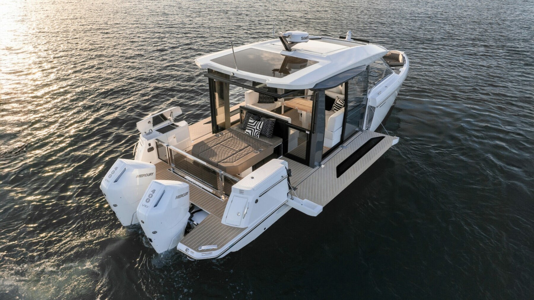 La Saxdor 400 GTC, è progettata per motorizzazioni fuoribordo doppie e sfrutta un’architettura navale esclusiva, garantendo un’esperienza di navigazione memorabile. Il ponte principale presenta un design innovativo con wheelhouse a tutta larghezza, ottimizzando gli spazi interni. Rispetto alla GTO, la GTC aggiunge un tocco di lusso grazie alle ampie superfici vetrate isolate, che creano un ambiente luminoso e accogliente, protetto dagli agenti esterni. Il layout consente un collegamento diretto alle terrazze laterali, per un’esperienza di relax simile a un’isola privata. Sottocoperta, due scale conducono alle cabine doppie – a prua e a centro barca – che condividono un bagno; è disponibile anche un terzo letto opzionale per bambini. Ogni dettaglio è progettato con eleganza e funzionalità. Contattaci per maggiori informazioni.