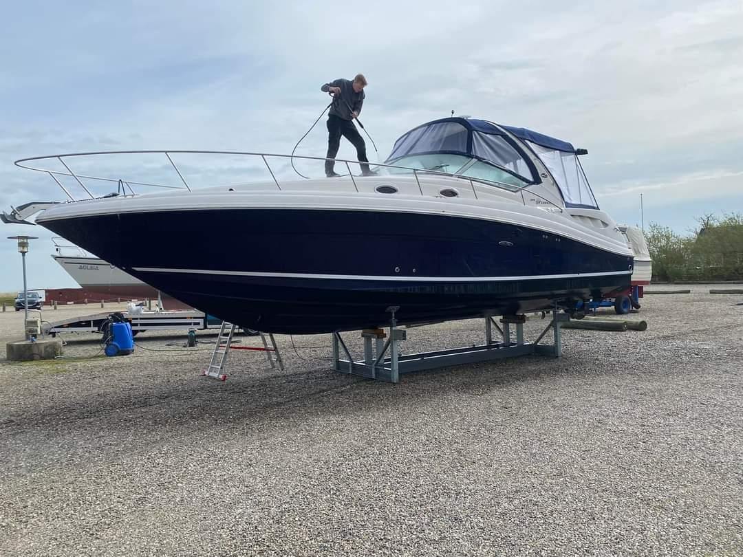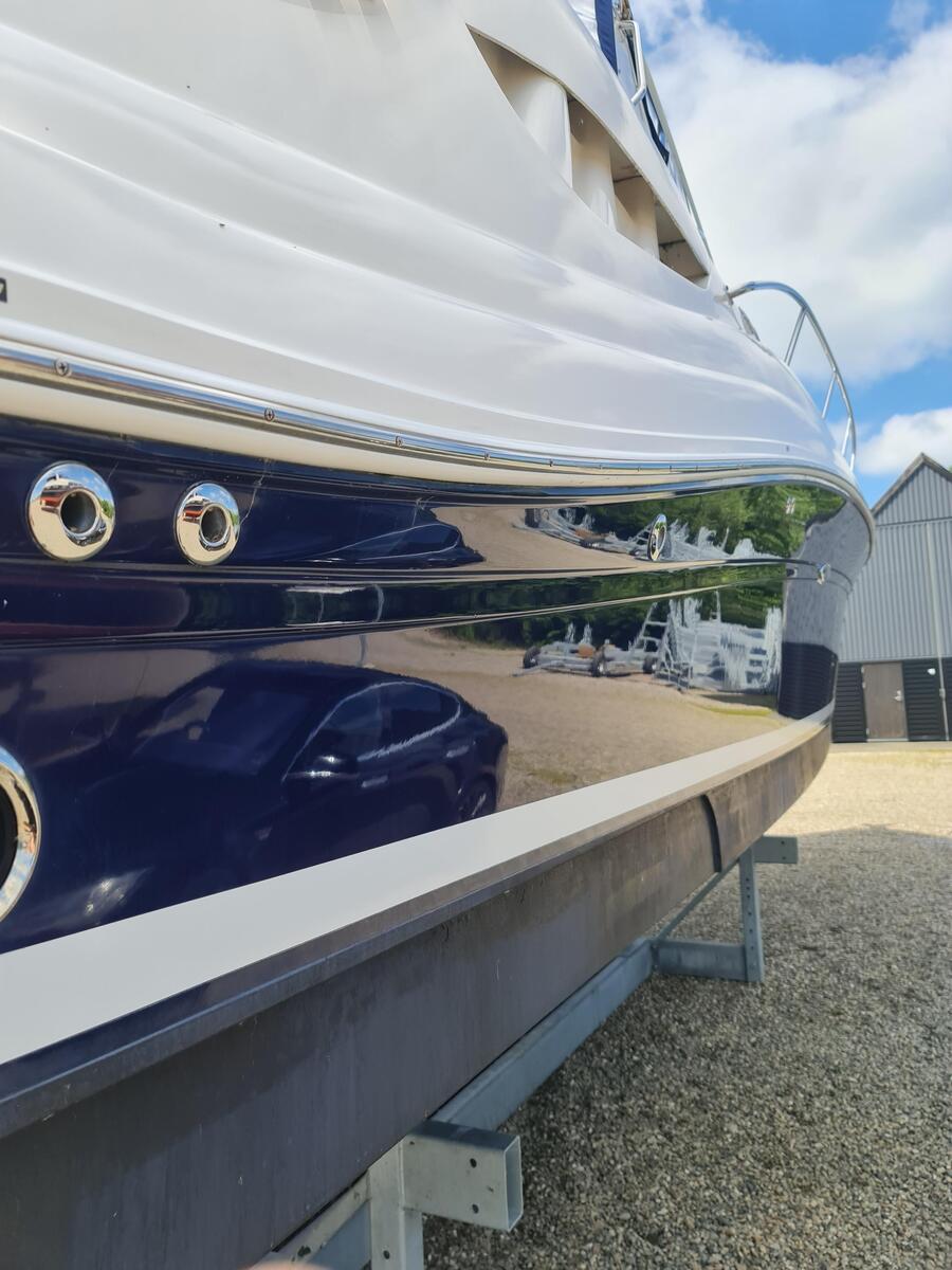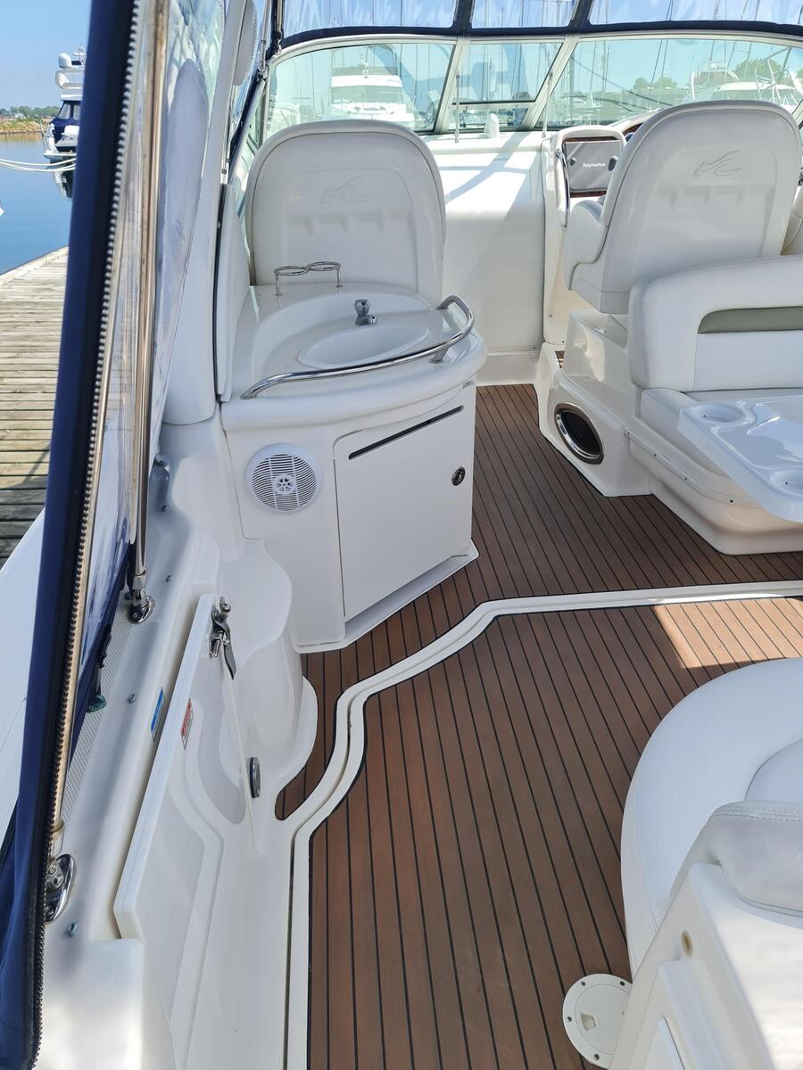 This Sundancer will put the wind in your hair with its top speed of over 30 knots from twin Yanmar 306hp marine diesel engines, but this one with the added benefits of shaft drive. She will love to run and enjoy the sweetwater but won’t cost you the earth in service and maintenance. The shaft drives make for effortless maneuverability in confined spaces, and this is enhanced by bow thrusters to make docking easy for all.